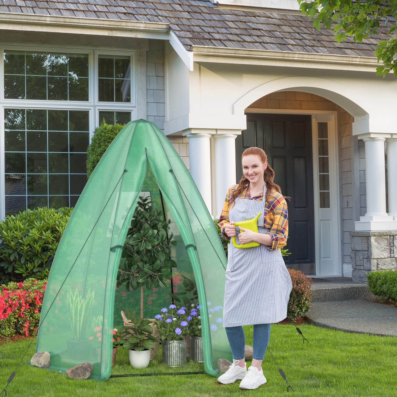 - 2 large zippered roll-up doors provide optimum air circulation and are great for moving your plant pots as well as taking care of your loved vegetables ans fruits. Overlong cover design make the greenhouse more secure to be fixed by stones on the edge.