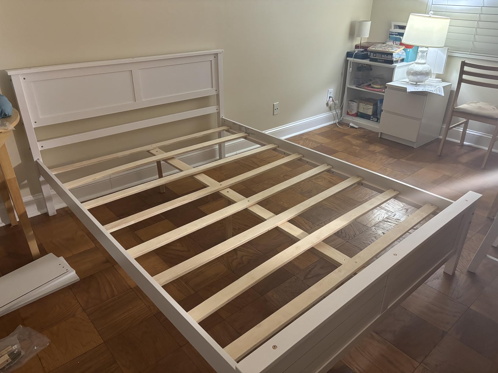 - [Sturdy and Noise-Free Sleep Solution]: Experience a restful sleep on our sturdy bed frame, constructed with 8 robust wooden slats tightly connected with secure screws. With a remarkable load capacity of up to 350 lbs, the platform bed provides reliable support for your mattress. Well-supported legs ensure stability, eliminating unwanted squeaking noises.