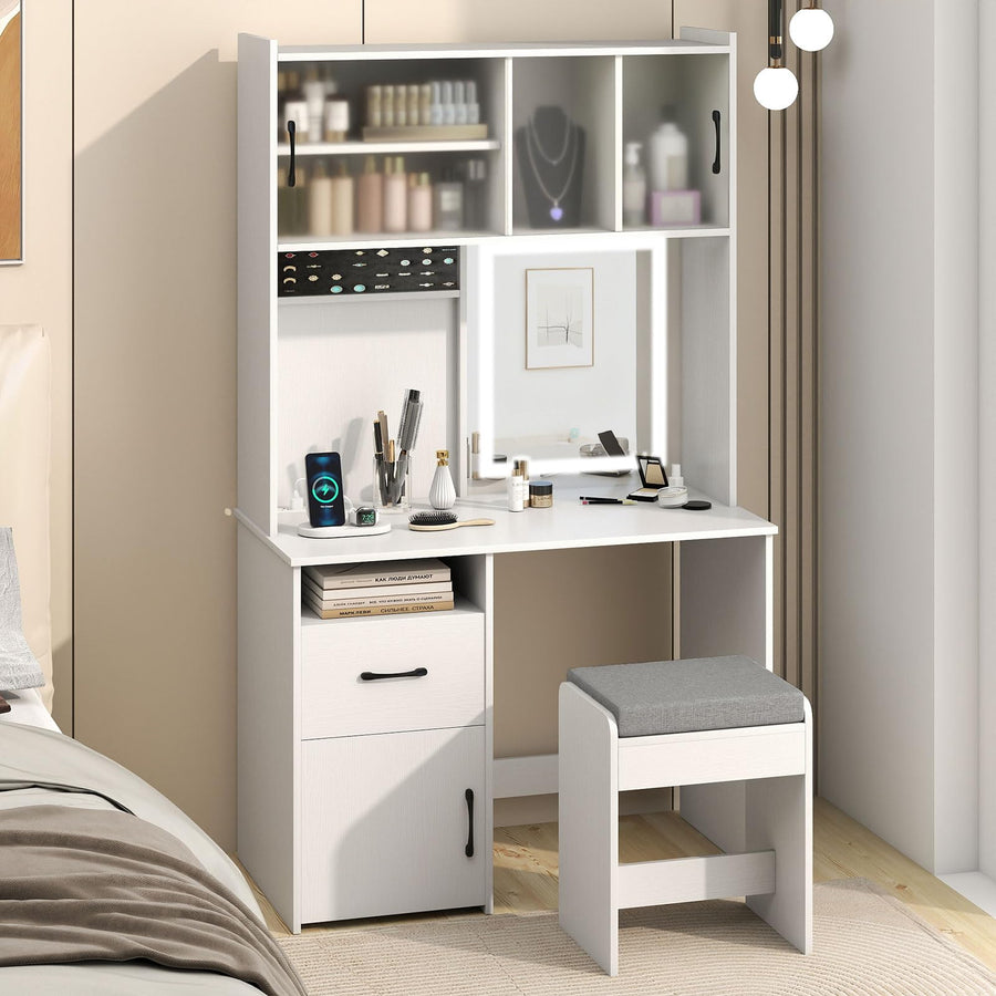 LED Vanity Set Dressing Table with Mirror White Makeup Vanities with Padded Stool - Giantexus