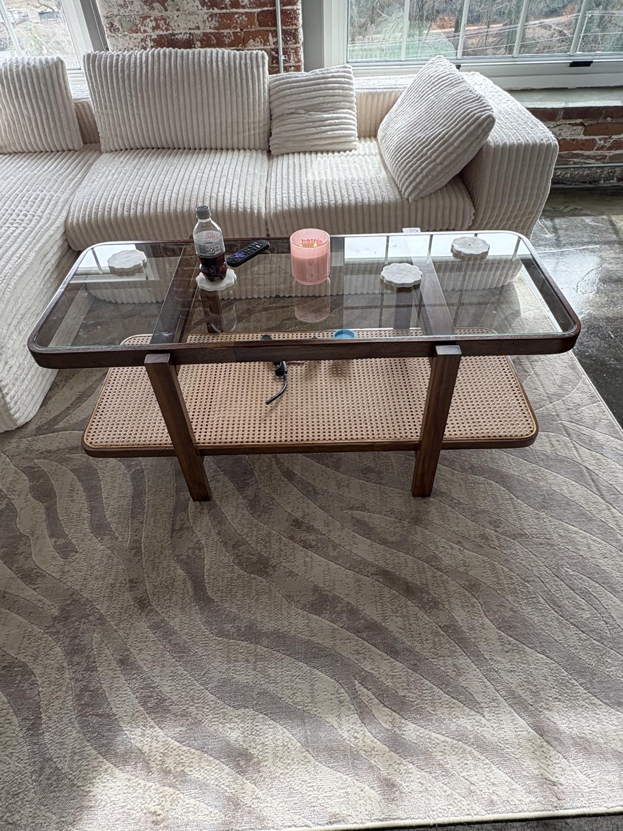 Tempered Glass & PE Rattan: The center table combines a heatproof tempered glass tabletop for easy cleanup & a tear-proof PE rattan shelf to resist fading. Both make it more suitable for long-term everyday use.