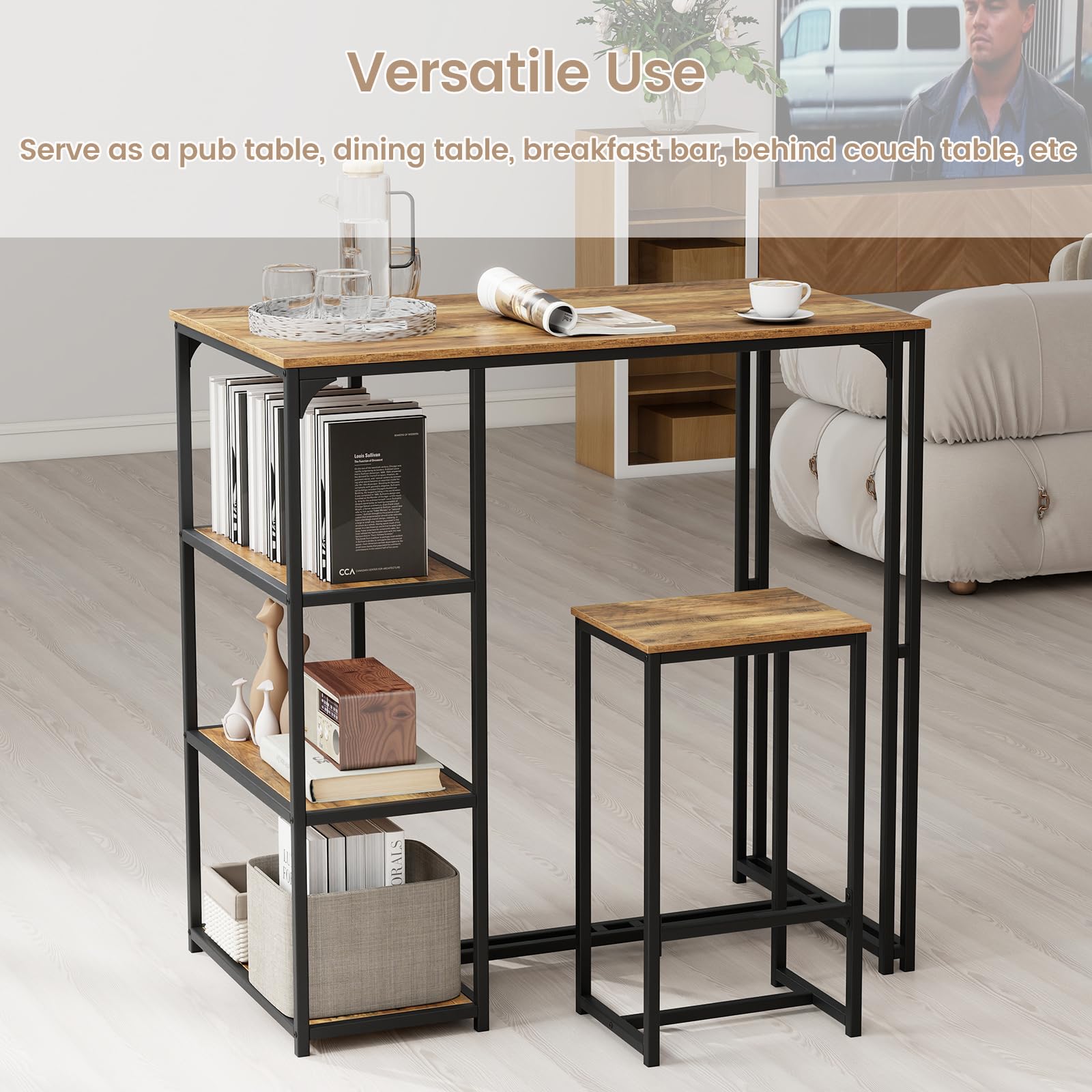 Serve as a pub table, dining table, breakfast bar, behind couch table, etc