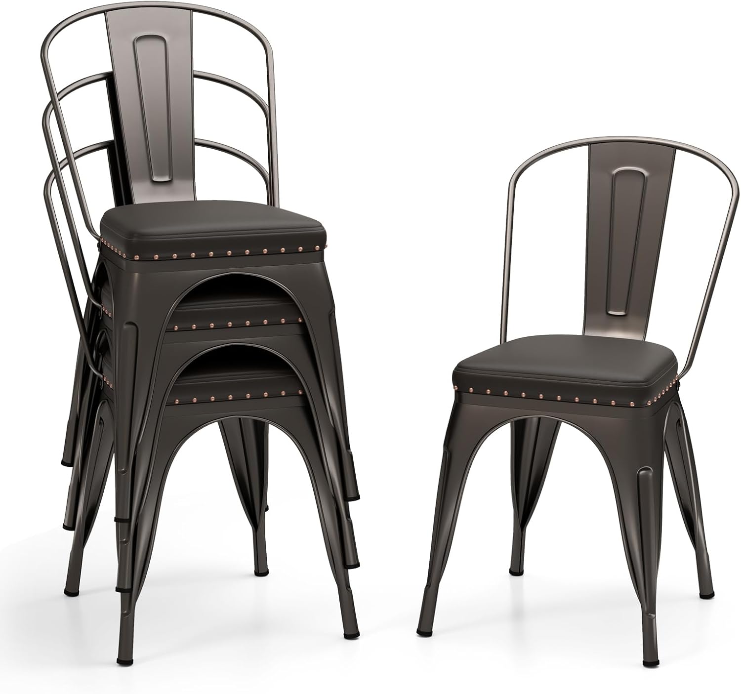Introducing our versatile and stylish metal dining chairs! Featuring upholstered seats with high-density sponge filling and waterproof PU leather, these chairs offer comfort and easy maintenance. The removable backrest design allows for full back support or a backless option, giving you flexibility in seating arrangements. Not only are these chairs comfortable, but they are also space-saving with their stackable design, perfect for small spaces. The heavy-duty metal construction ensures a strong weight capacity of up to 330 lbs. Anti-scratch pads protect your floors during stacking. Ideal for home dining rooms, restaurants, or cafes, these dining chairs blend seamlessly with various styles and decorations.