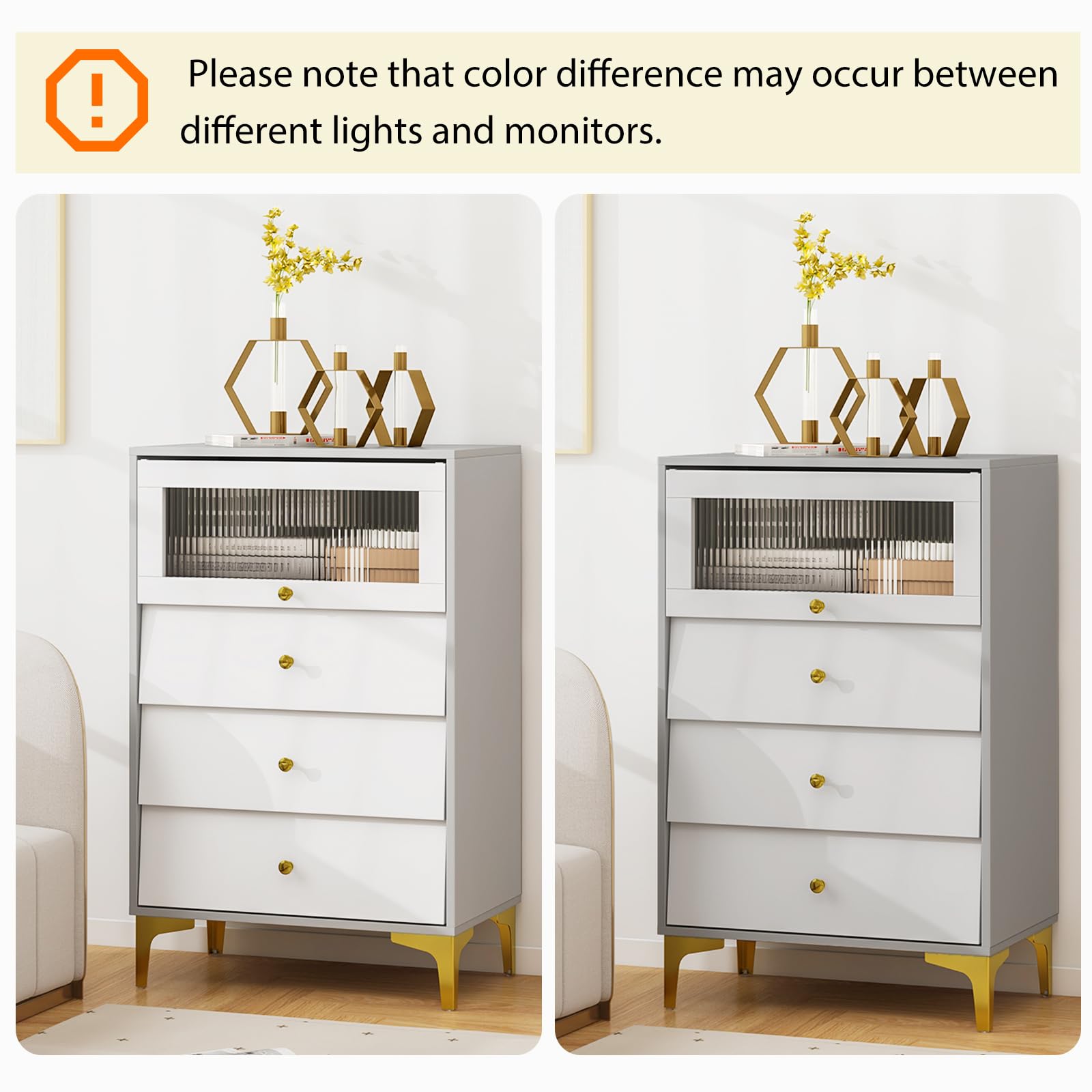 - [Versatile & Practical Design]: The inclined drawer doors and classic grey and white color scheme combine style and functionality. This storage cabinet is a perfect addition to your living room, bedroom, entryway, and more.