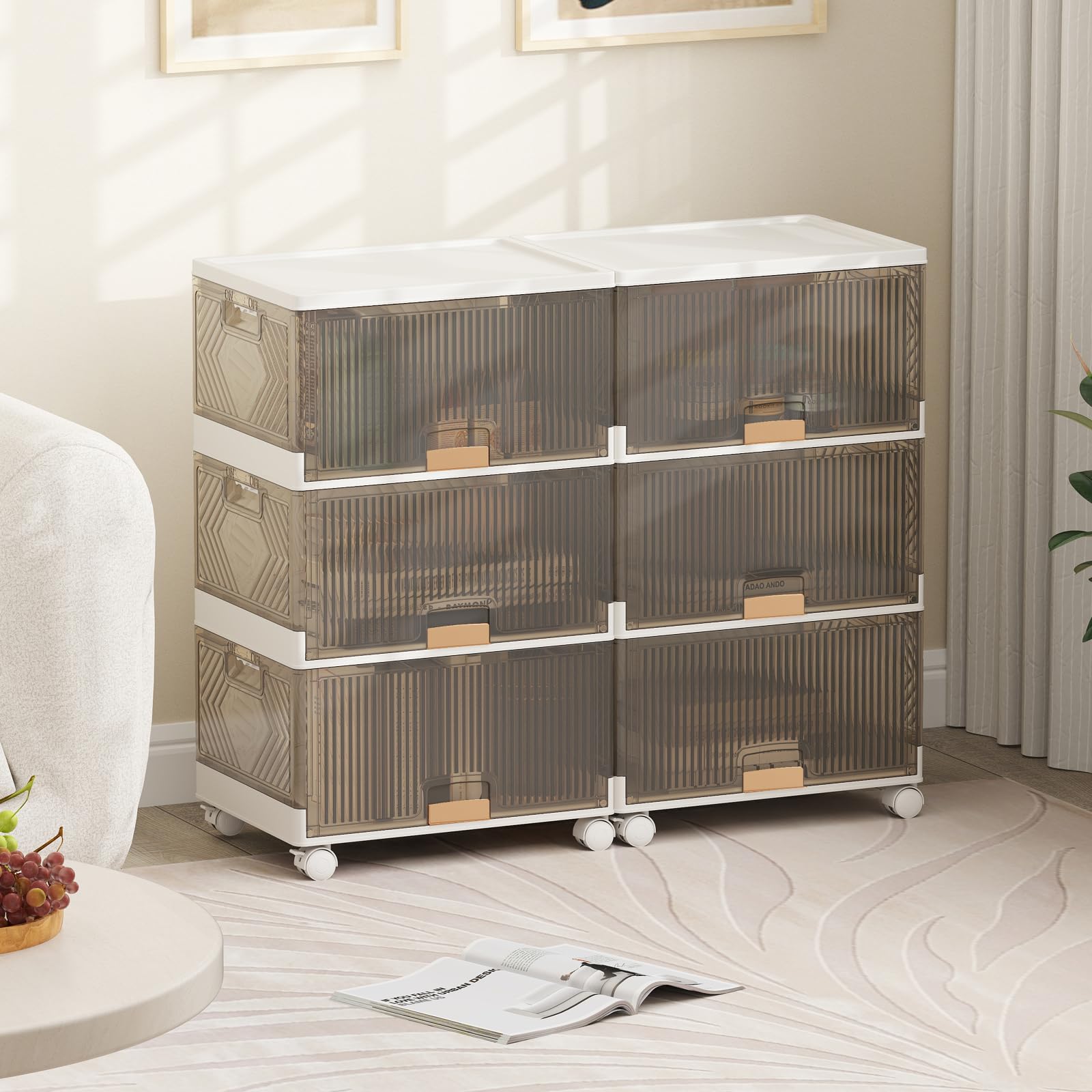 The stackable storage bin is a practical and versatile solution for keeping your belongings organized. With 13.5-27Gal large load capacity, it offers plenty of space to store shoes, clothes, books, or food. Its flexible modular design allows you to customize the layout by splitting and combining cabinets as needed. The collapsible bins are easy to fold for convenient storage and quick setup. Equipped with detachable universal wheels, the storage bin can be moved around effortlessly, and 2 lockable wheels provide stability when stationary. Crafted from premium PP material, the cabinet is deformation-resistant and safe to use. Convenient handles make it easy to reach items inside, while side clips ensure secure stacking for stability and organization in any space. The stackable storage bin is an ideal storage solution for various needs in your home.