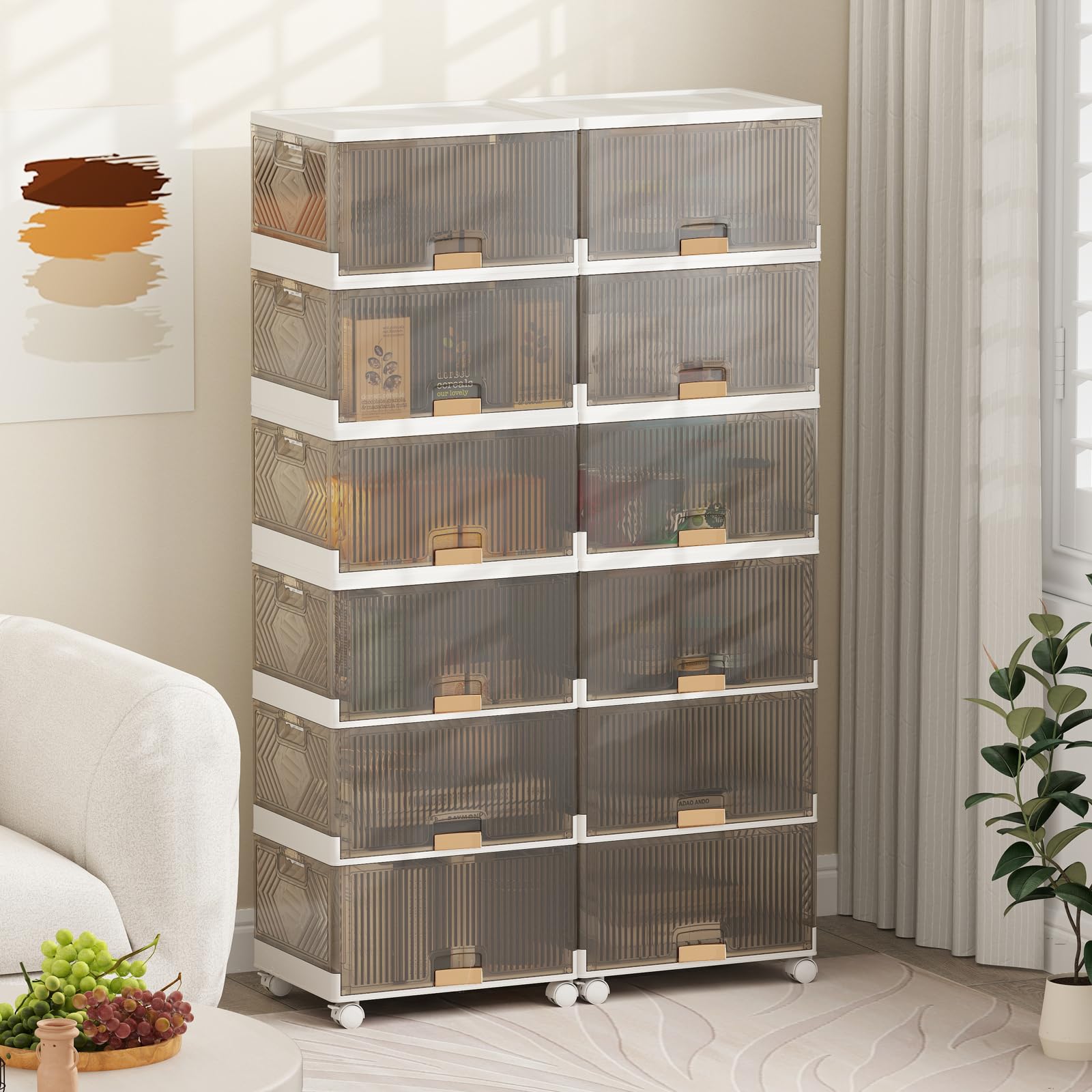 The stackable storage bin is a practical and versatile solution for keeping your belongings organized. With 13.5-27Gal large load capacity, it offers plenty of space to store shoes, clothes, books, or food. Its flexible modular design allows you to customize the layout by splitting and combining cabinets as needed. The collapsible bins are easy to fold for convenient storage and quick setup. Equipped with detachable universal wheels, the storage bin can be moved around effortlessly, and 2 lockable wheels provide stability when stationary. Crafted from premium PP material, the cabinet is deformation-resistant and safe to use. Convenient handles make it easy to reach items inside, while side clips ensure secure stacking for stability and organization in any space. The stackable storage bin is an ideal storage solution for various needs in your home.