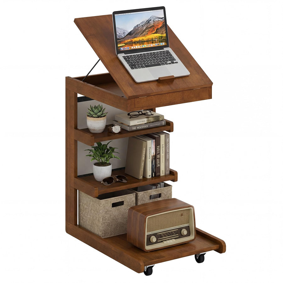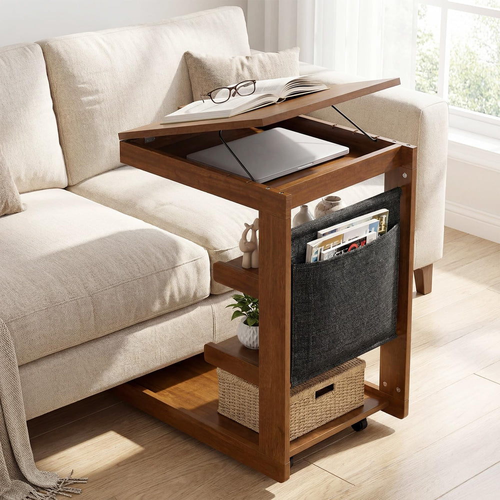 Giantex C-Shaped End Table with Wheels w/Adjustable Desktop