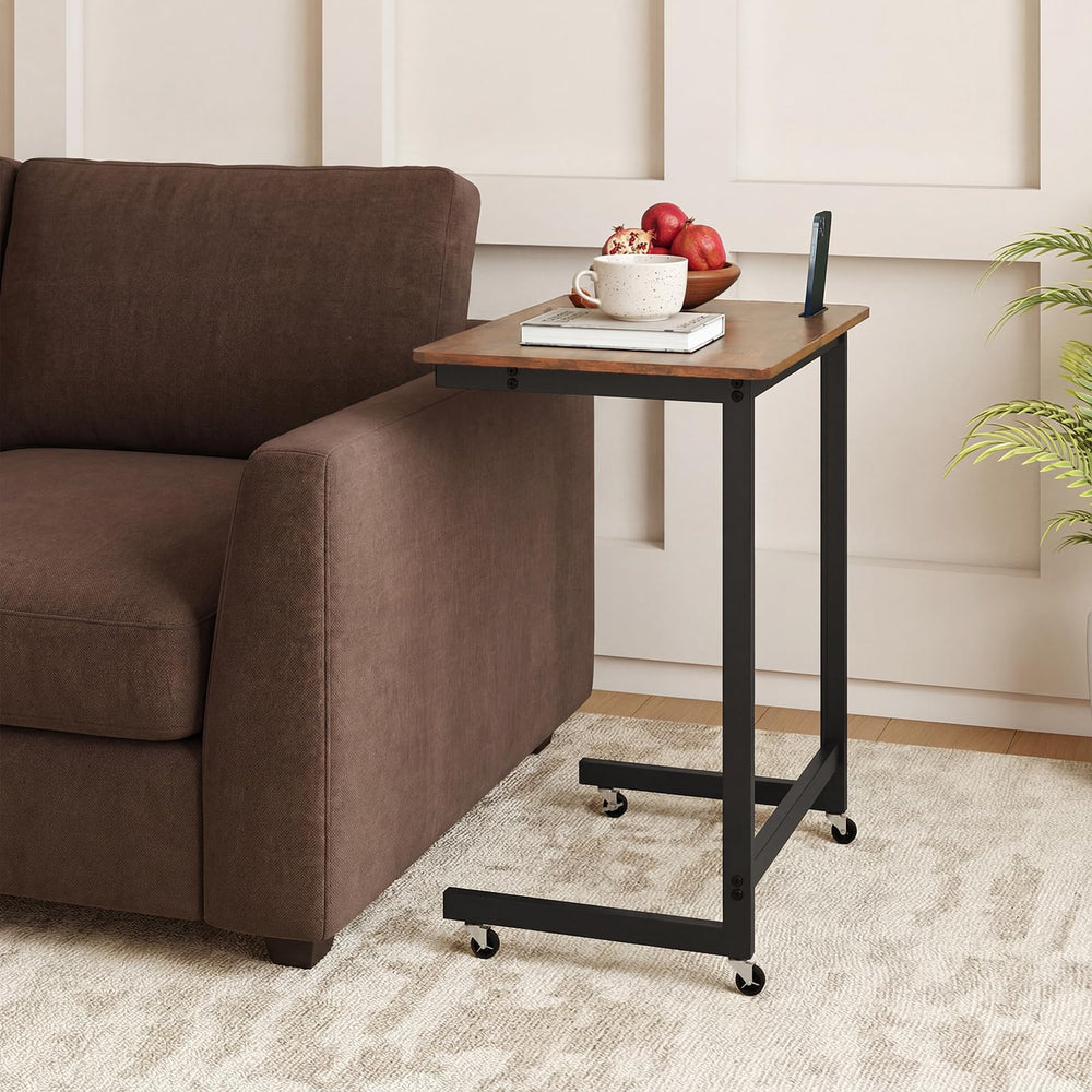 Giantex C-Shaped End Table with Wheels for Living Room Bedroom