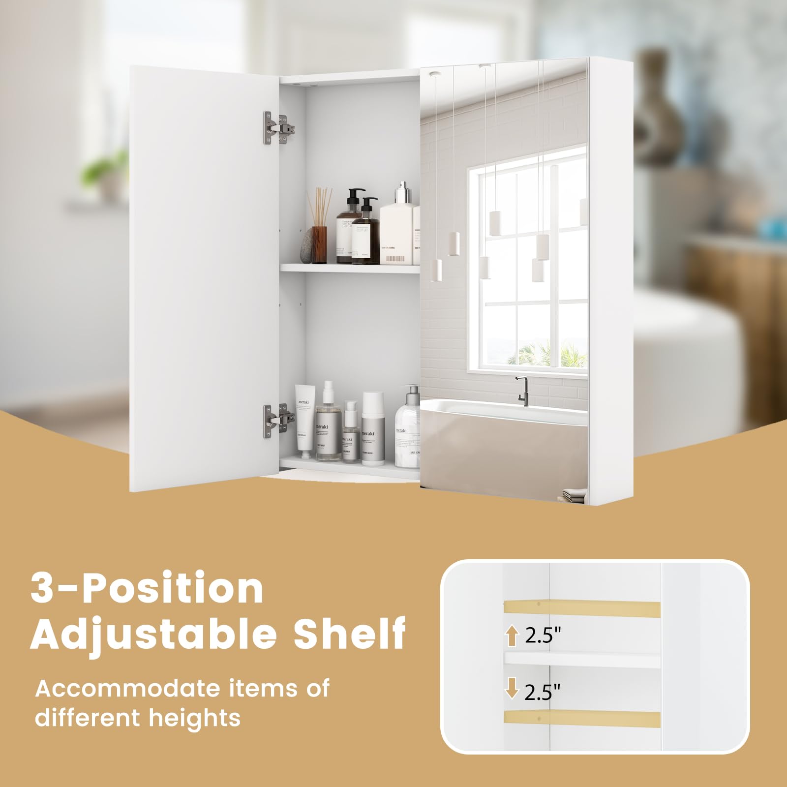 • [Adjustable Shelf for Versatile Storage]: This bathroom medicine cabinet offers ample storage space for towels, cosmetics, shampoo, and more. The interior 3-position adjustable shelf can accommodate toiletries of various sizes, ensuring a clutter-free space.