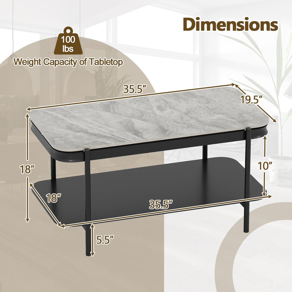 Giantex 2-Tier Coffee Table with Storage Faux Mable Center Table w/Sintered Stone Top