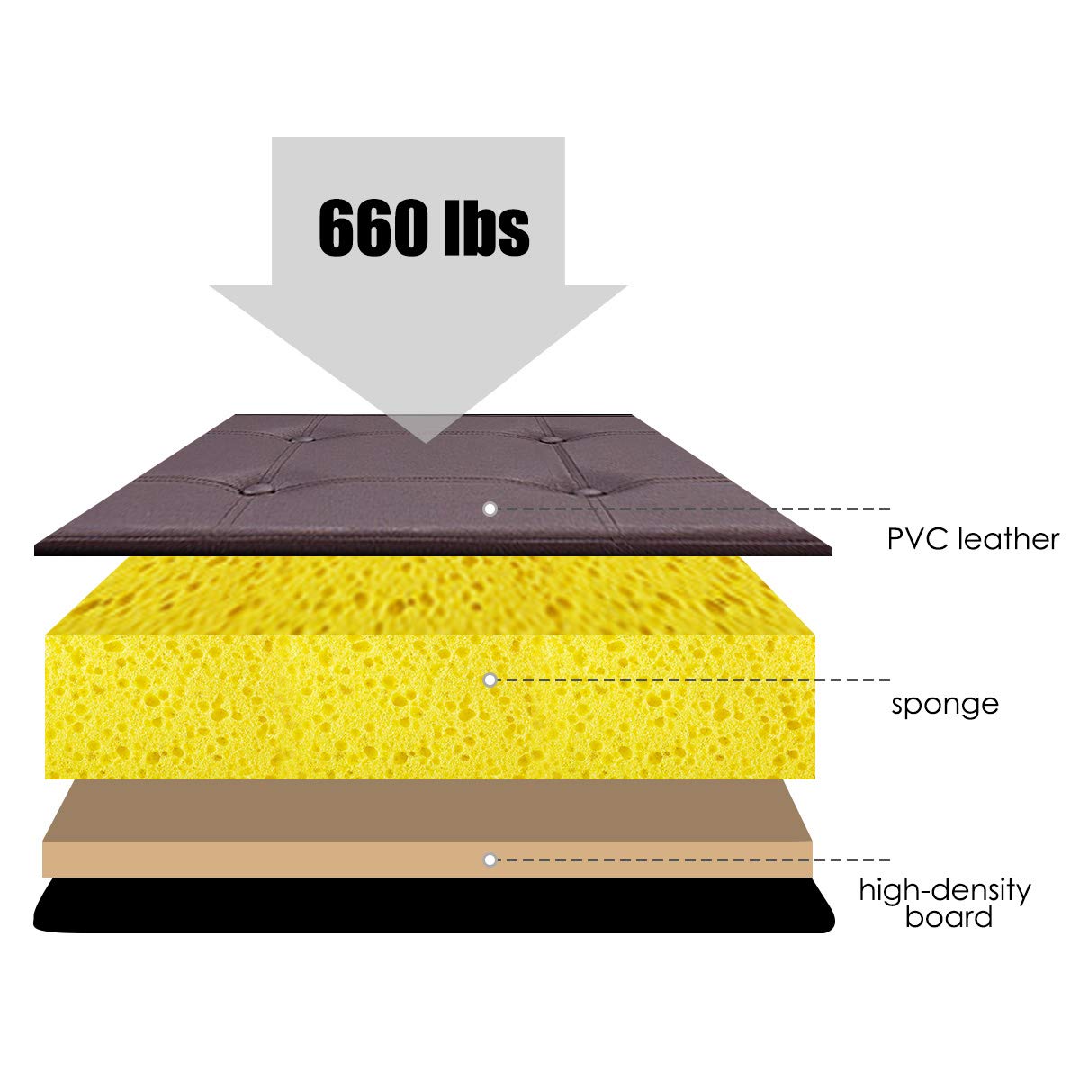 • Thick & Soft Padded Seat: The Giantex storage ottoman has thick sponge padded seat and sturdy frame, which could hold 660lbs. And the sponge on the seat is soft enough to support you to have a relaxing time on it.