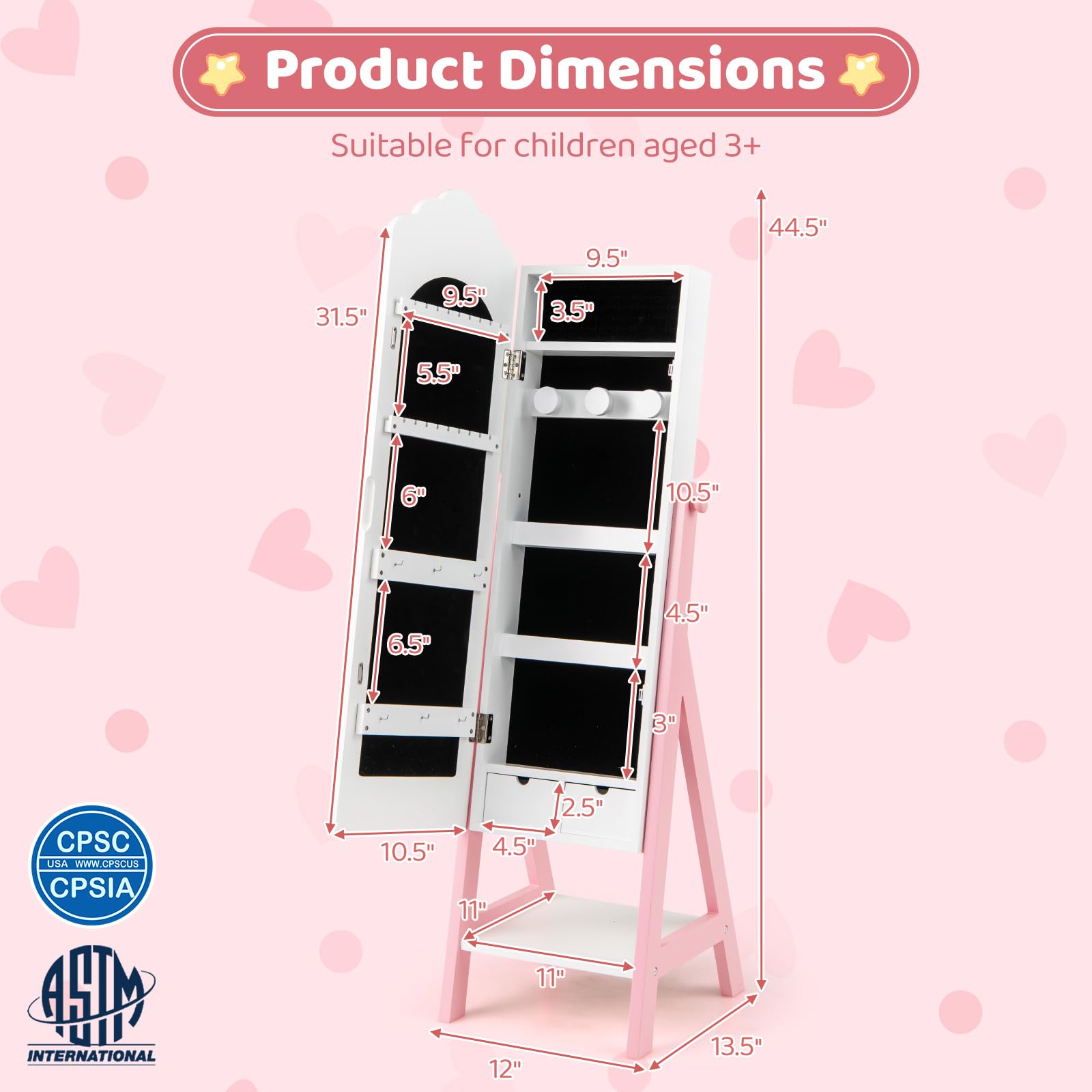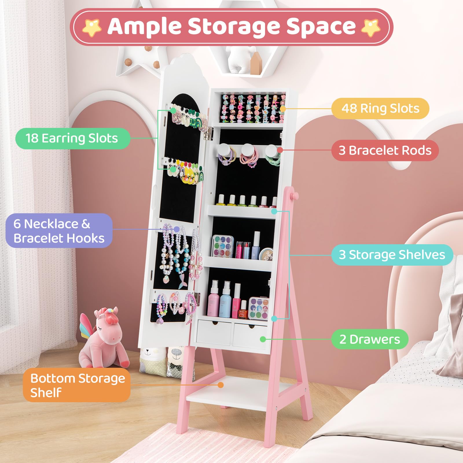 CHARMAID Kids Jewelry Organizer with Full Length Mirror