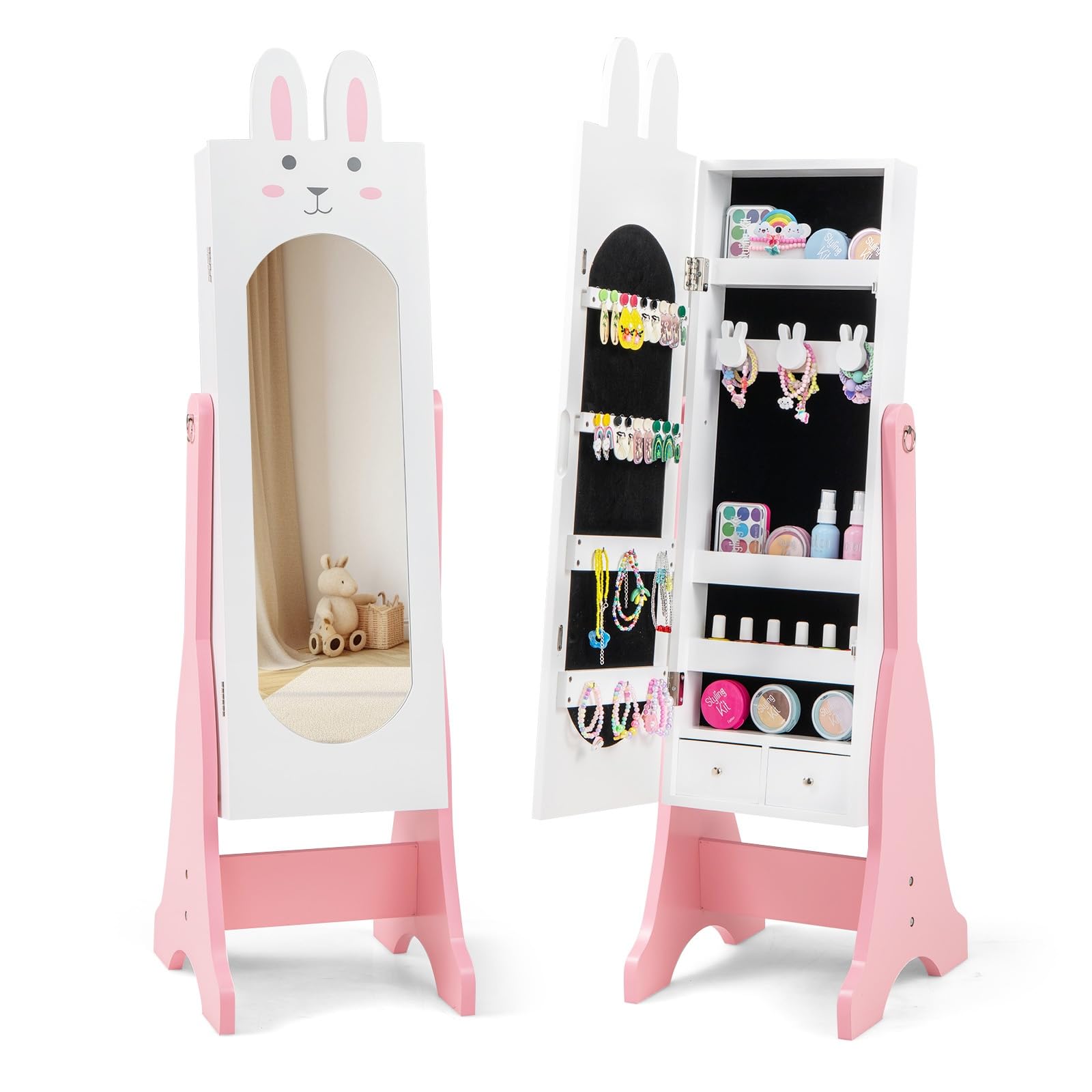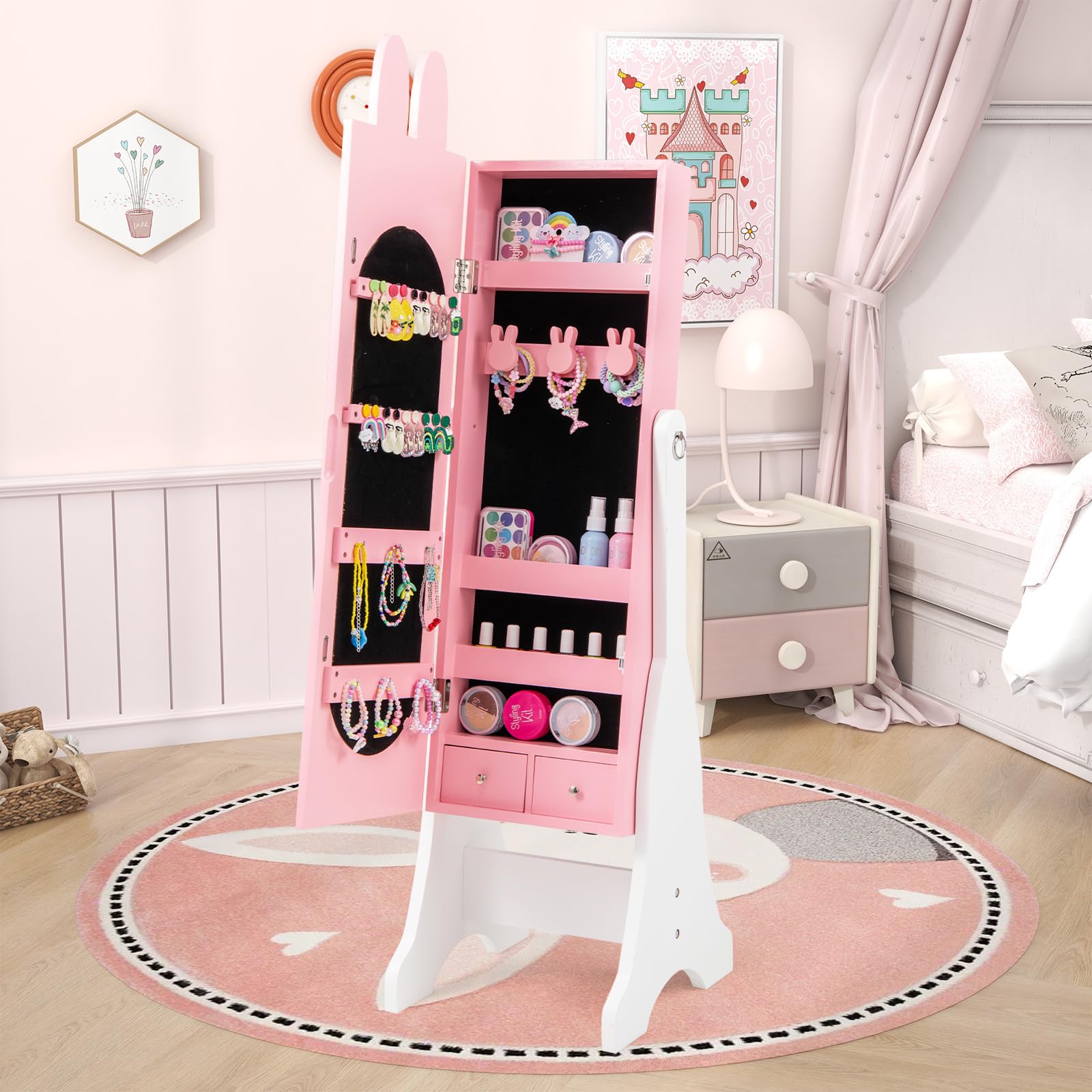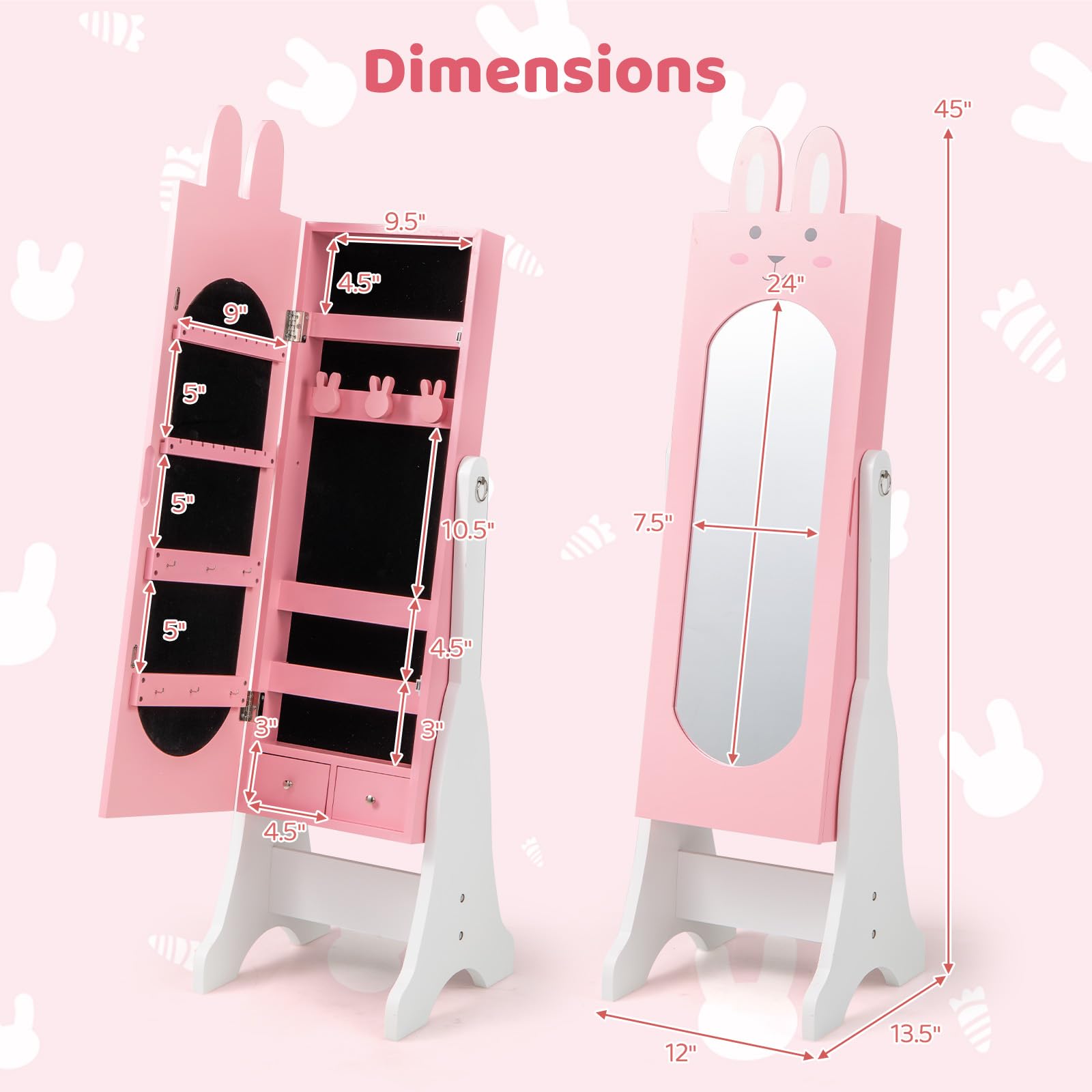 CHARMAID Kids Mirror Jewelry Cabinet - 45" Standing Jewelry Armoire with Full Length Mirror