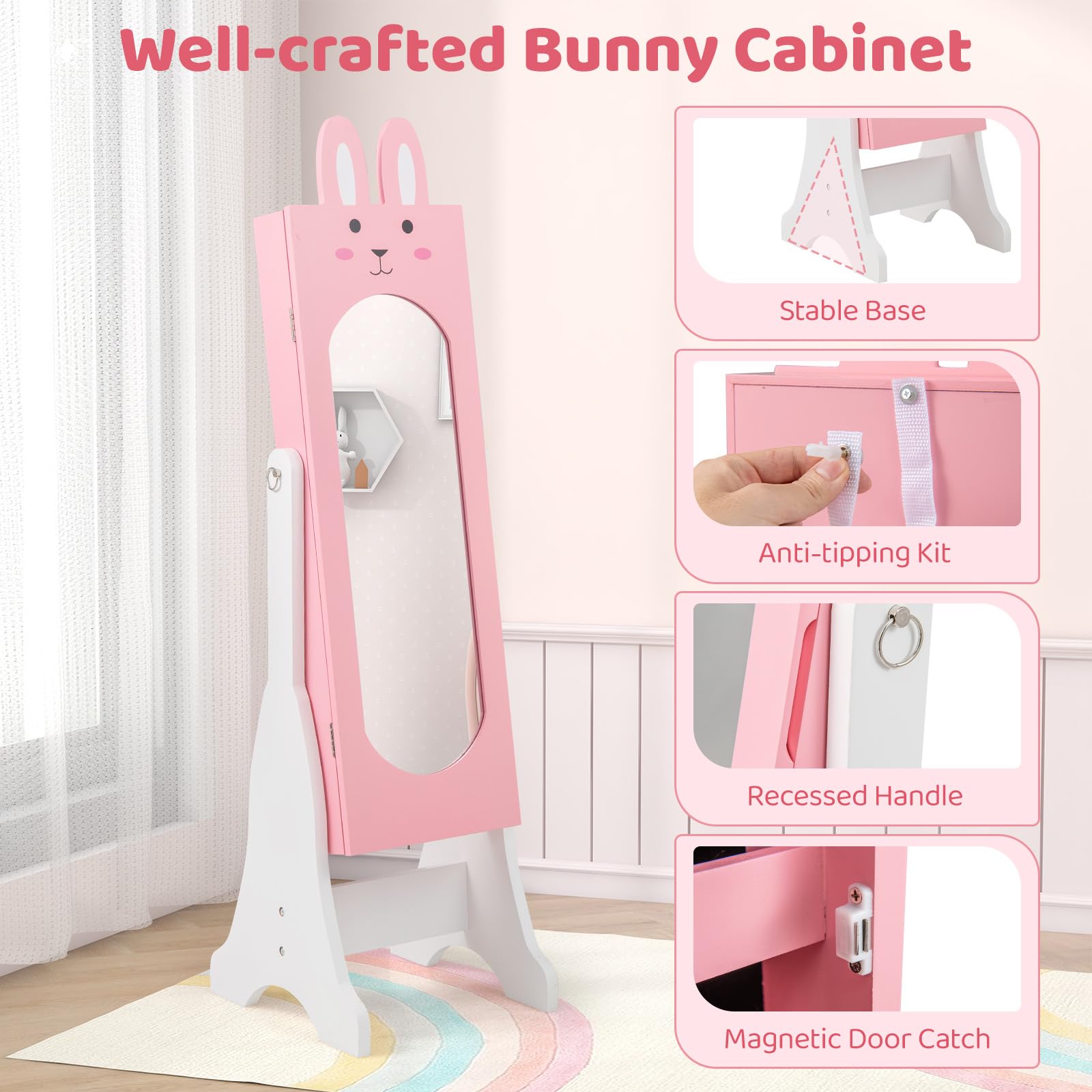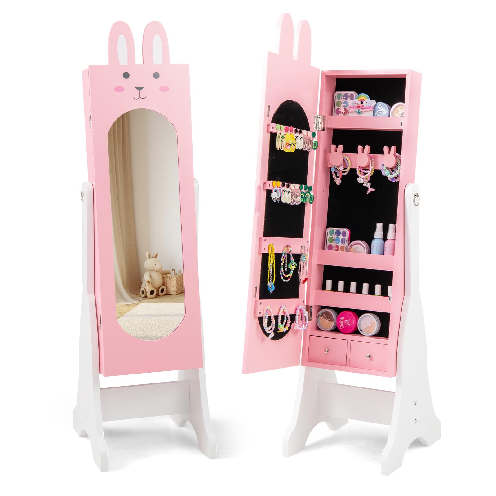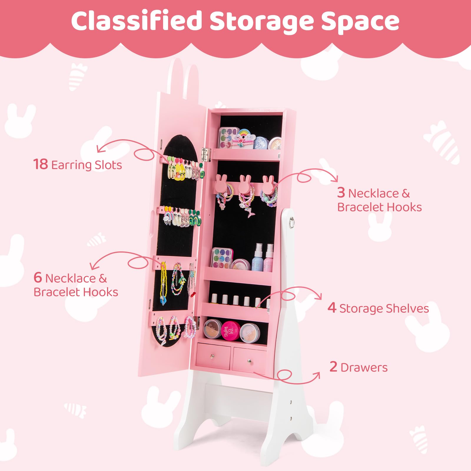 CHARMAID Kids Mirror Jewelry Cabinet - 45" Standing Jewelry Armoire with Full Length Mirror