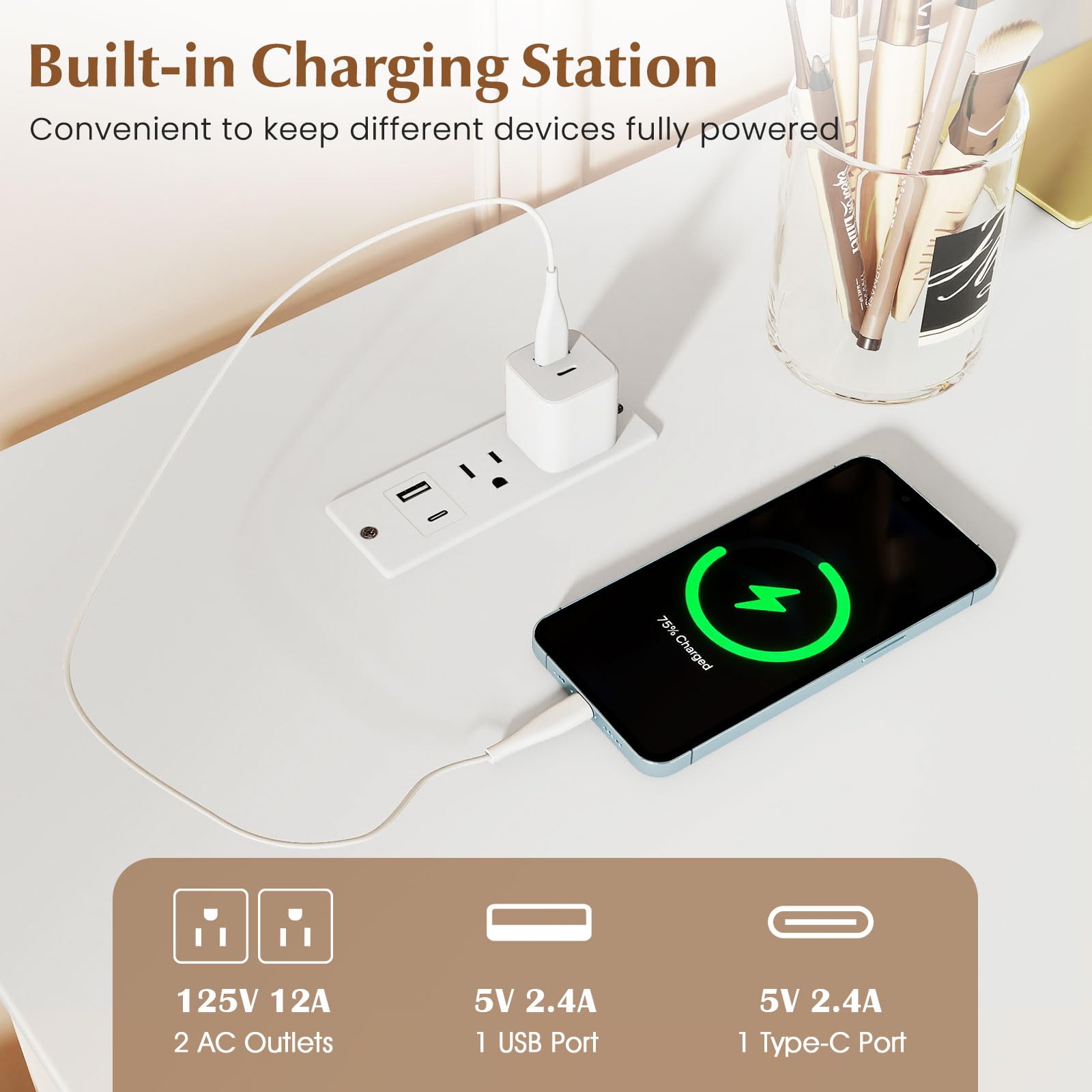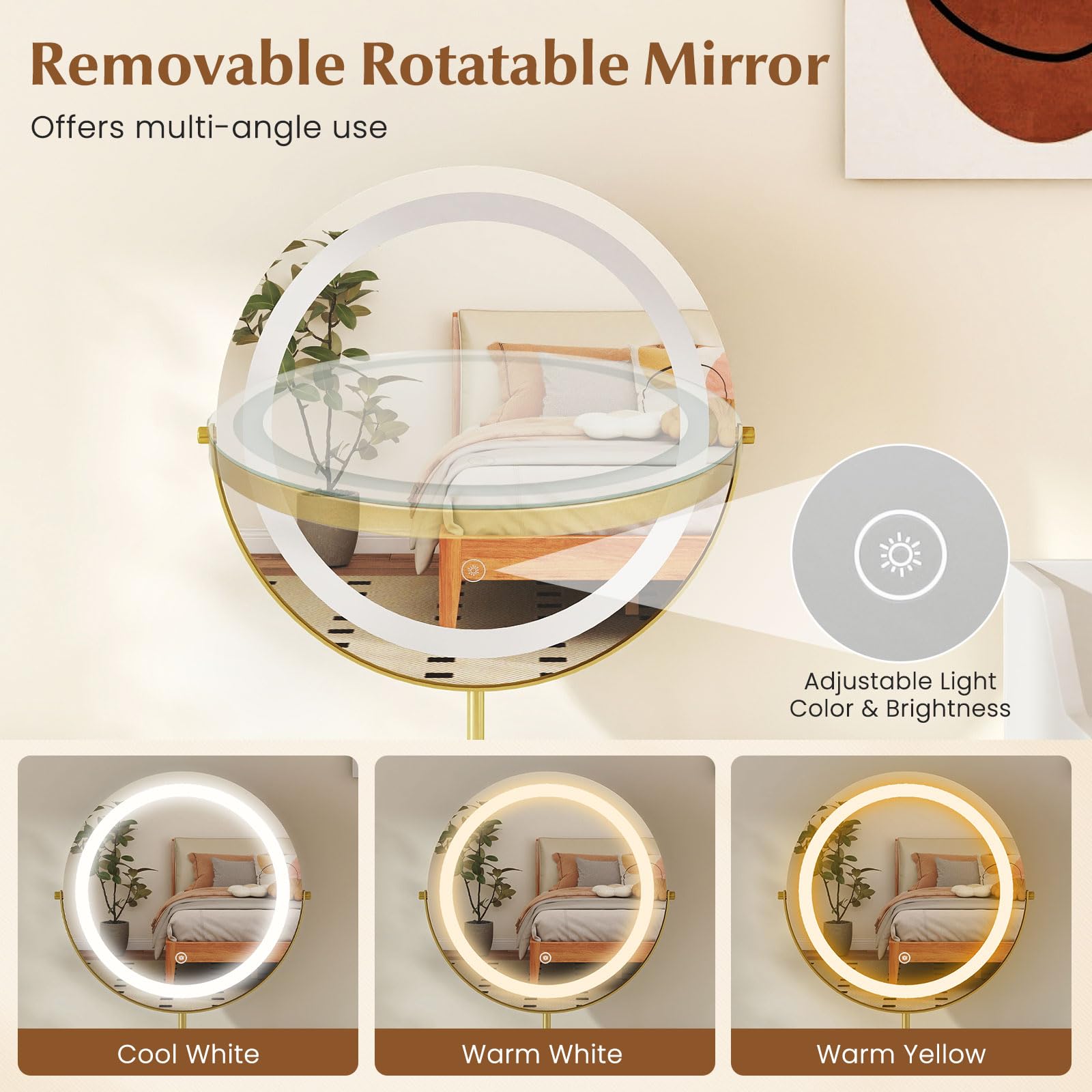 The rotatable LED mirror provides adjustable brightness and 3 color modes for flawless makeup in any lighting. The built-in charging station powers your phone, hair tools, and other devices while keeping your space clutter-free.