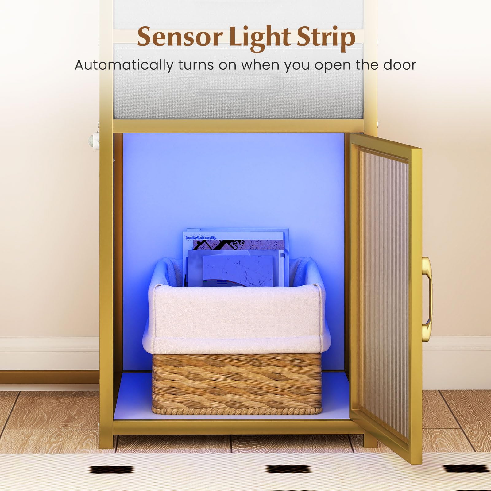 Ample storage: 2 fabric drawers, 1 open compartment, 1 cabinet, 1 side pocket