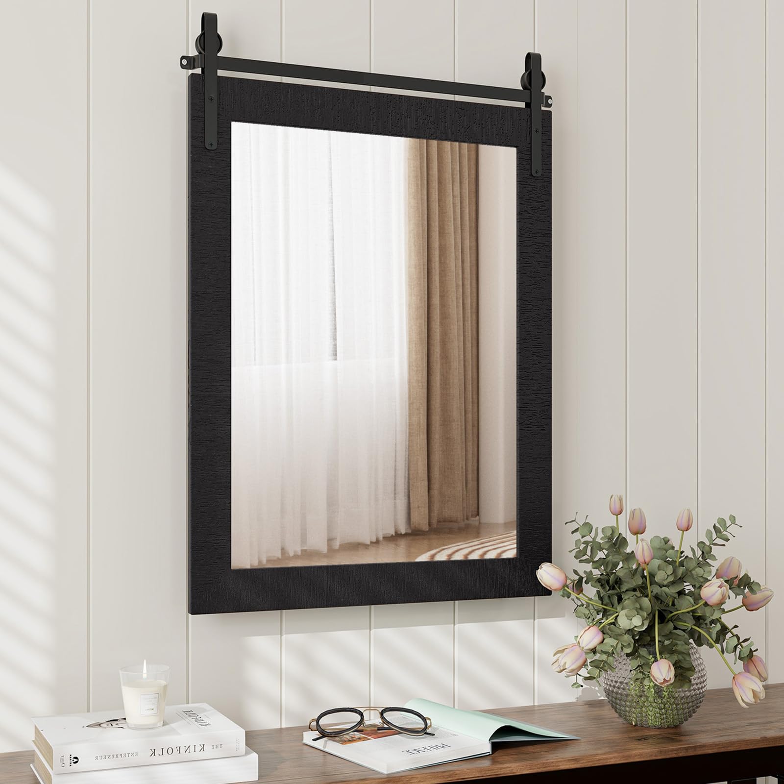 Add a touch of farmhouse elegance to your home with this barn door inspired wall mirror.