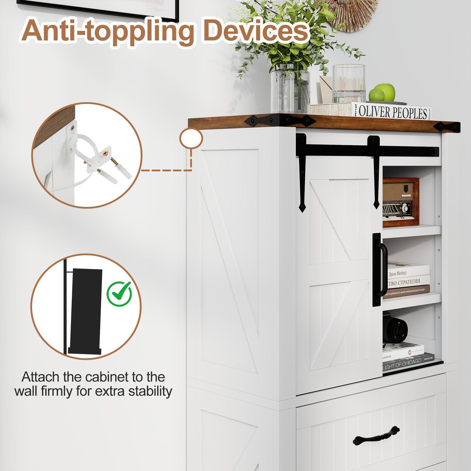 Anti-toppling devices ensure cabinet stability when attached to the wall
