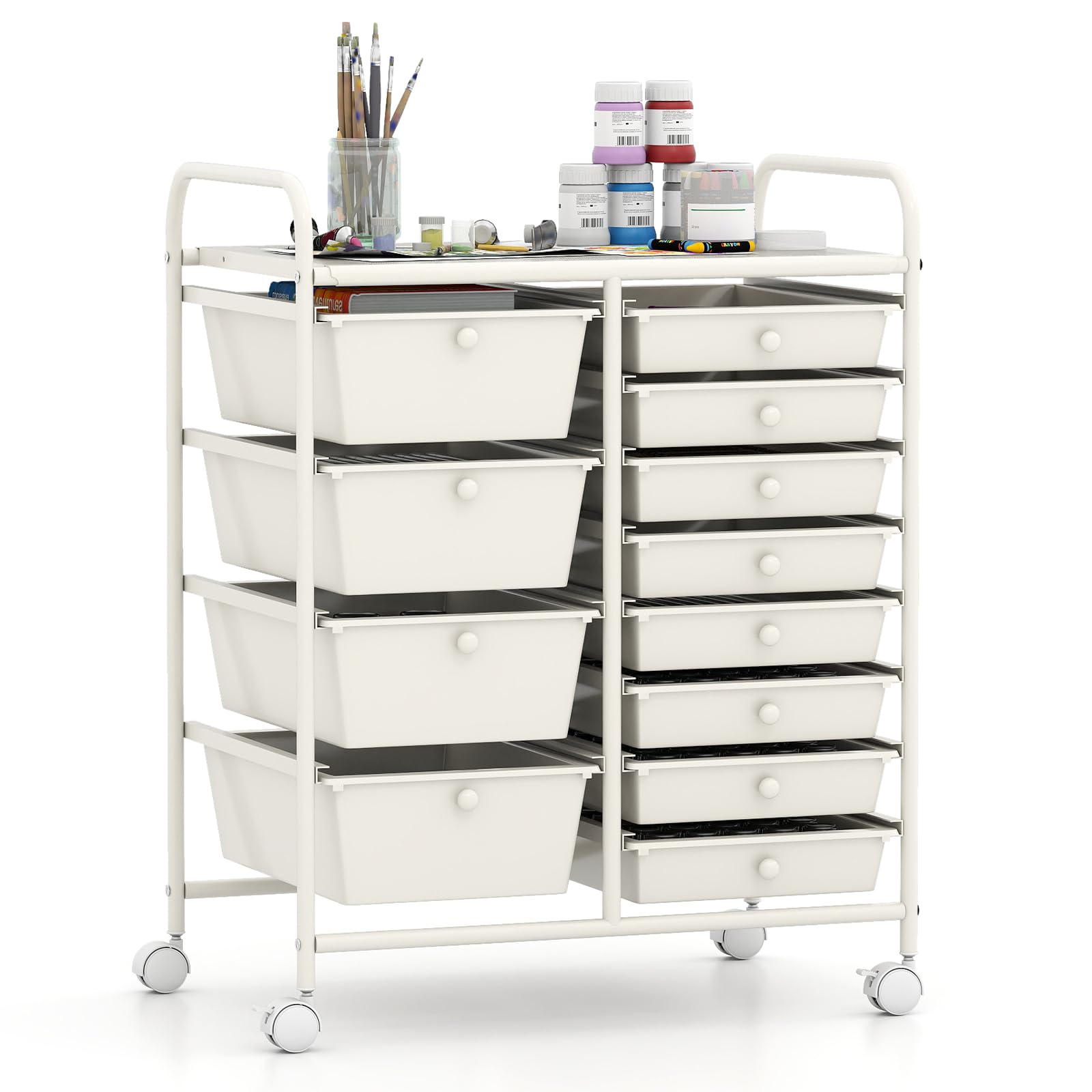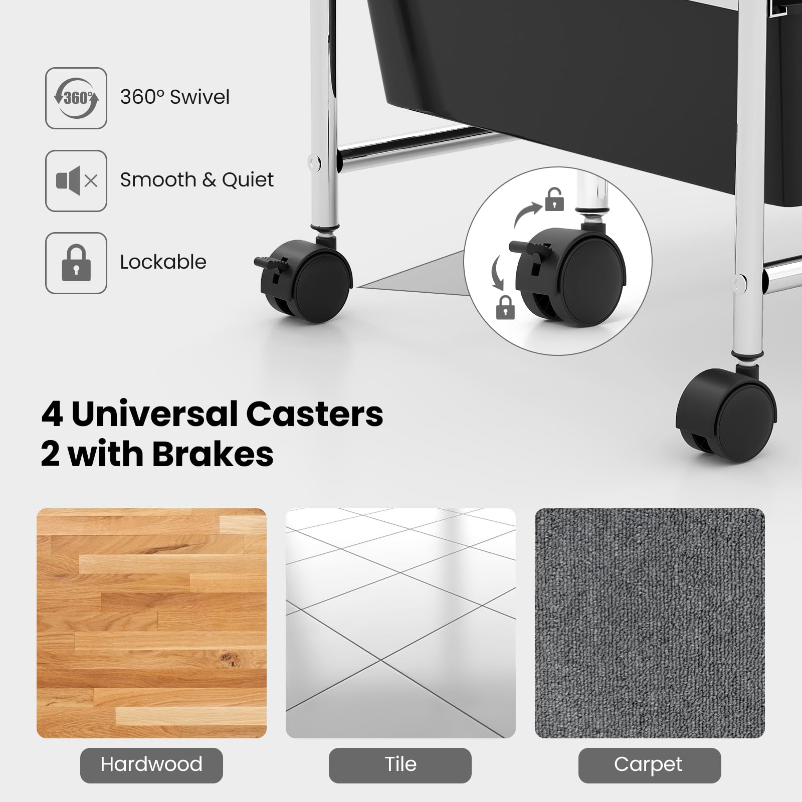 Supported by a chrome-plated metal frame, this mobile craft organizer is built for everyday use with its sturdy construction. The top shelf and smooth-gliding drawers provide easy access and flexible storage options. Equipped with 360° swivel wheels, including 2 locking casters to keep it secure when needed, the rolling utility cart organizer effortlessly moves between rooms. Whether you are organizing craft materials, office essentials, cosmetics, or tools, this plastic organizer trolley adapts to your requirements, making it ideal for craft rooms, studios, classrooms, etc.
