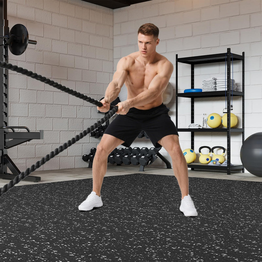 Upgrade your home gym with these 12-piece interlocking rubber mats. The durable double-layer design combines abrasion-resistant rubber and shock-absorbing foam for floor protection and noise reduction. Anti-slip surface ensures safe workouts, while seamless tiles create a stable, continuous area. Sweatproof and easy to clean, these mats provide a comfortable, convenient, and safe workout environment.