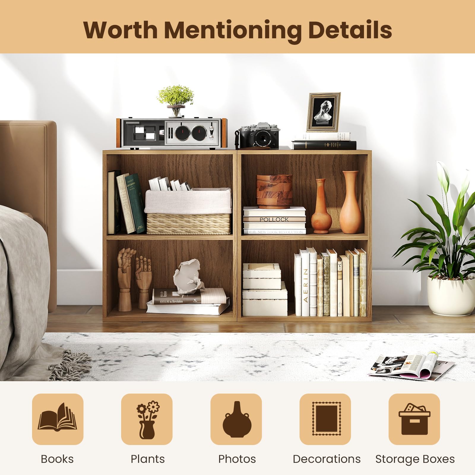 2-cube bookshelf with open design for easy access