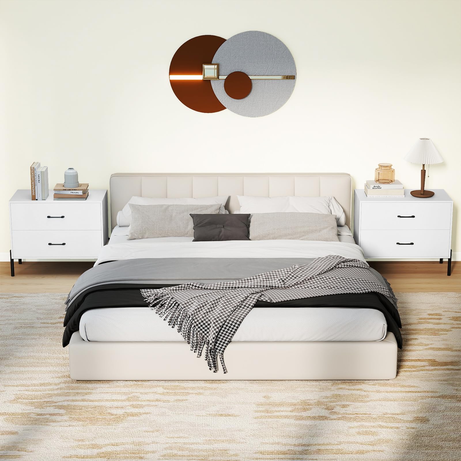 With a spacious tabletop and 2 large drawers, the modern organizer is perfect to store drinks, snacks, phones, magazines and decorations. Supported by sturdy metal legs that provide a 6” clearance for easy cleaning, this nightstand combines durability with convenience. Featuring smooth drawer slides and anti-tipping kits, it ensures effortless use and safety. The sleek, minimalist design makes this 2-drawer side table seamlessly complements multiple indoor settings, such as bedroom, office, or dorm, making organization both simple and stylish.