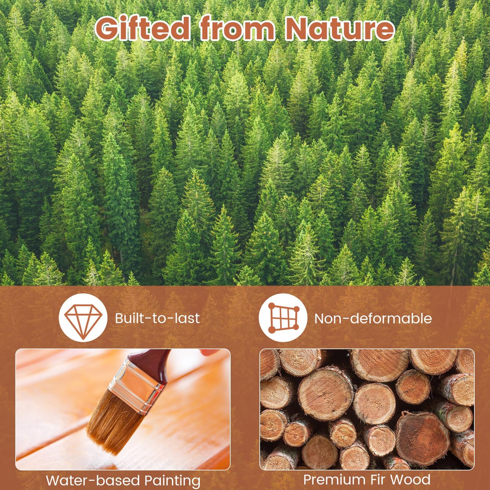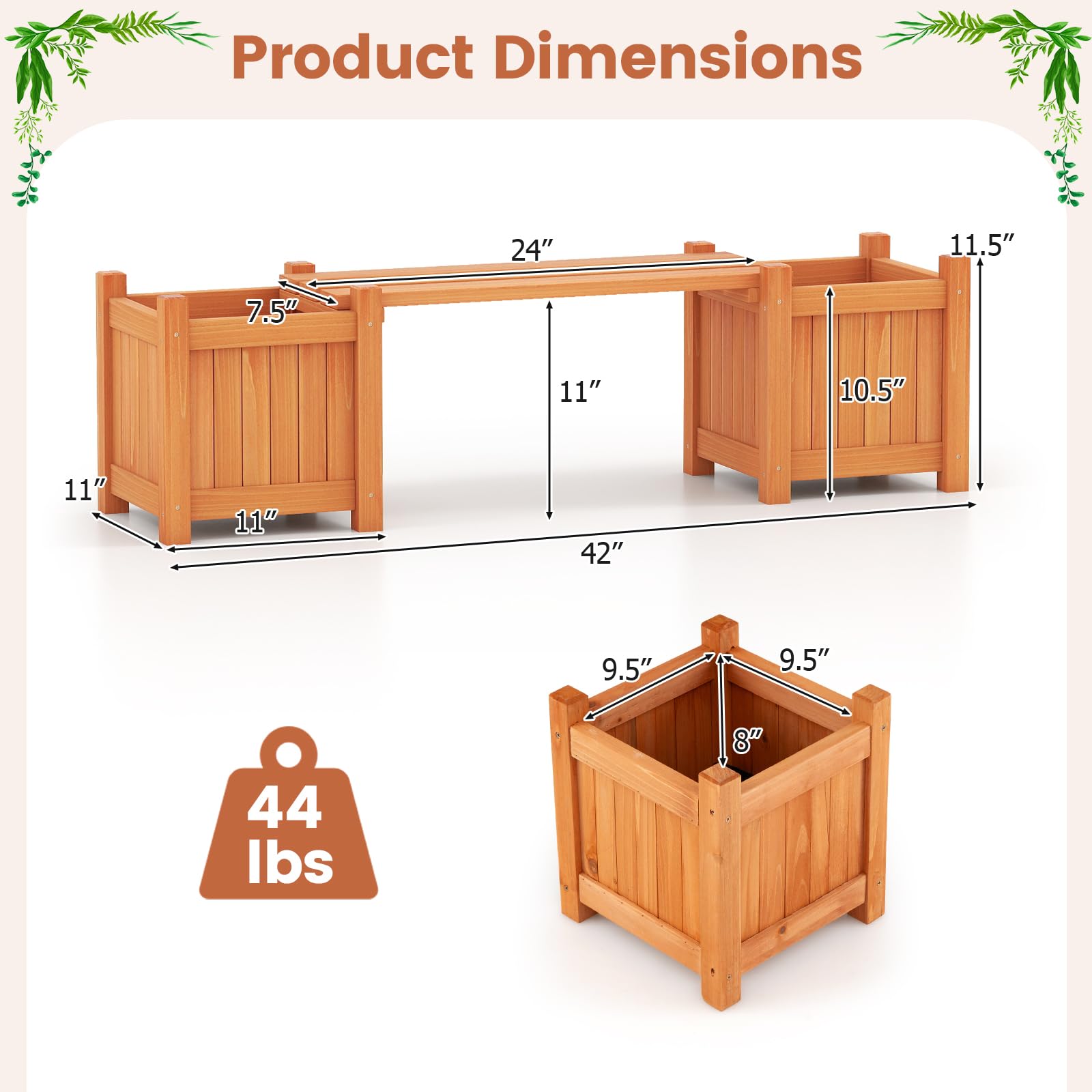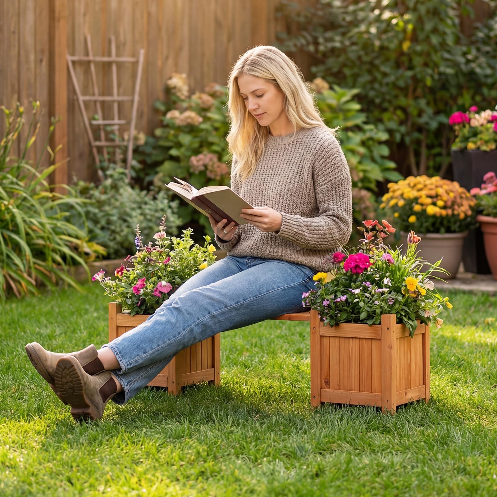 Crafted from premium fir wood, the small planter box with a bench is a standout addition to any outdoor space. It not only ensures great durability but also elevates the aesthetics. Additionally, the bottom of the flower box aids in water drainage and ensures the preservation of soil nutrients. Perfect for displaying flowers, saplings, or seasonal decorations, the versatile garden planter set is ideal for patios, yards, or decks. Moreover, the detachable bench with slotted design will simplify the assembly process.