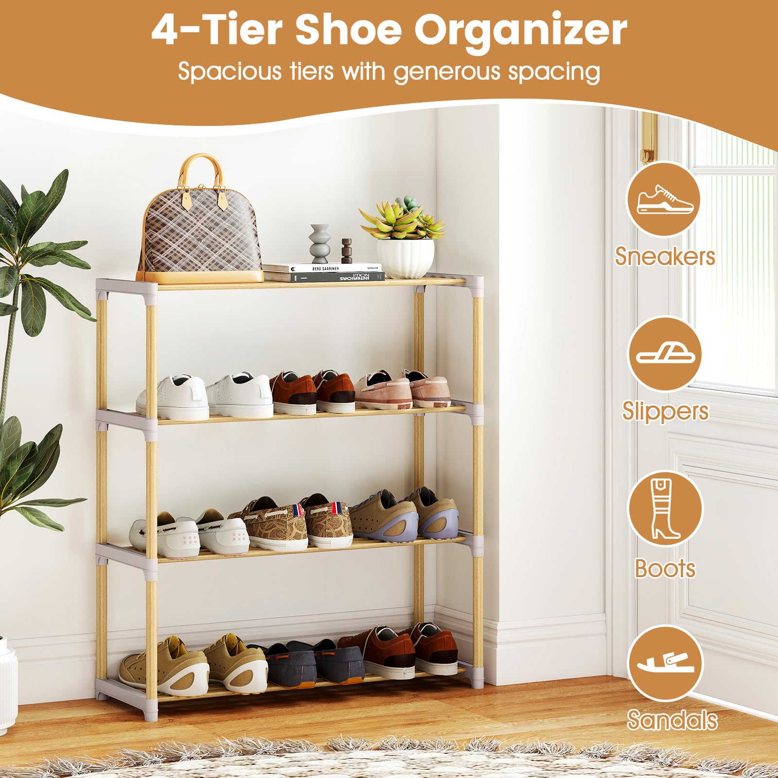 3/4-tier storage space keeps footwear neatly organized