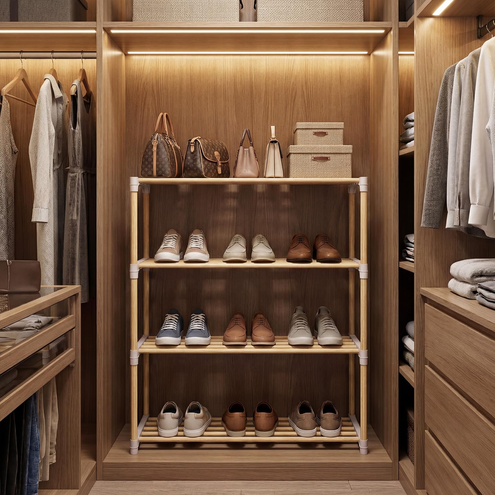 Suitable for entryway, bedroom, or closet shoe storage