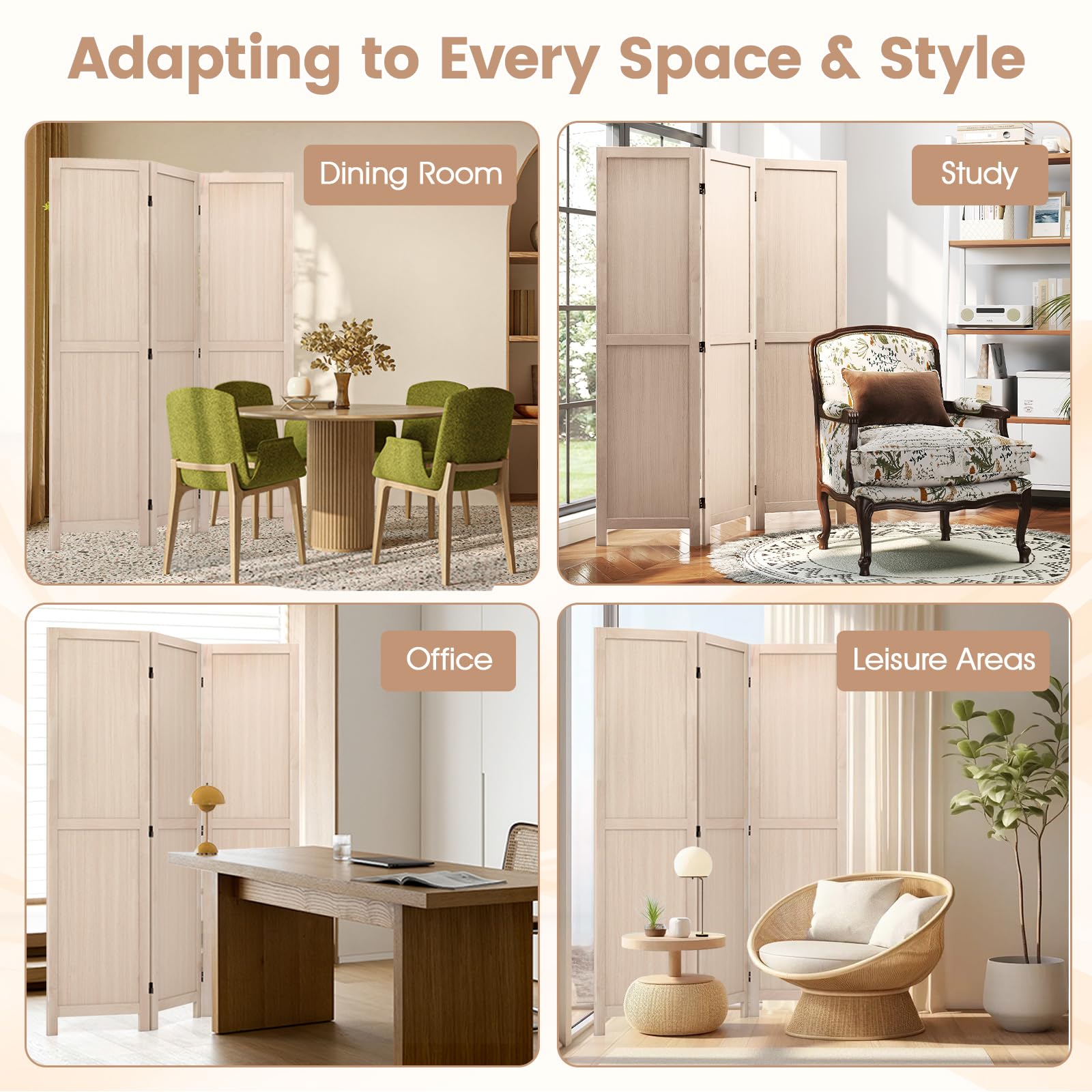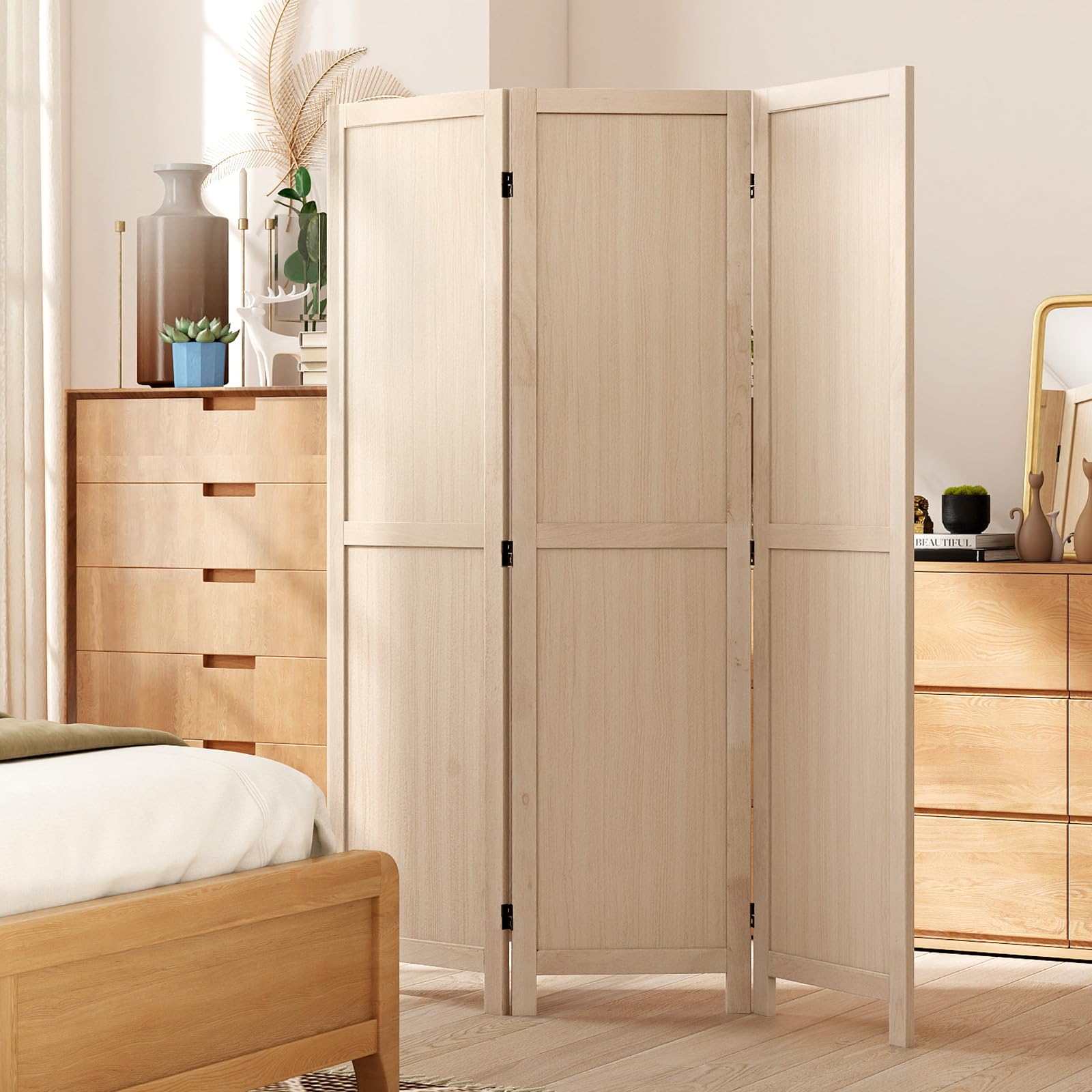 This 67" folding room divider is crafted from durable natural rubberwood for long-lasting strength. Its smooth, easy-fold design allows quick setup and compact storage, while the rustic wood grain finish adds charm to any space. Perfect for bedrooms, living rooms, home offices, or studios, it provides flexible privacy without assembly. Includes an anti-tip kit for added stability and peace of mind.