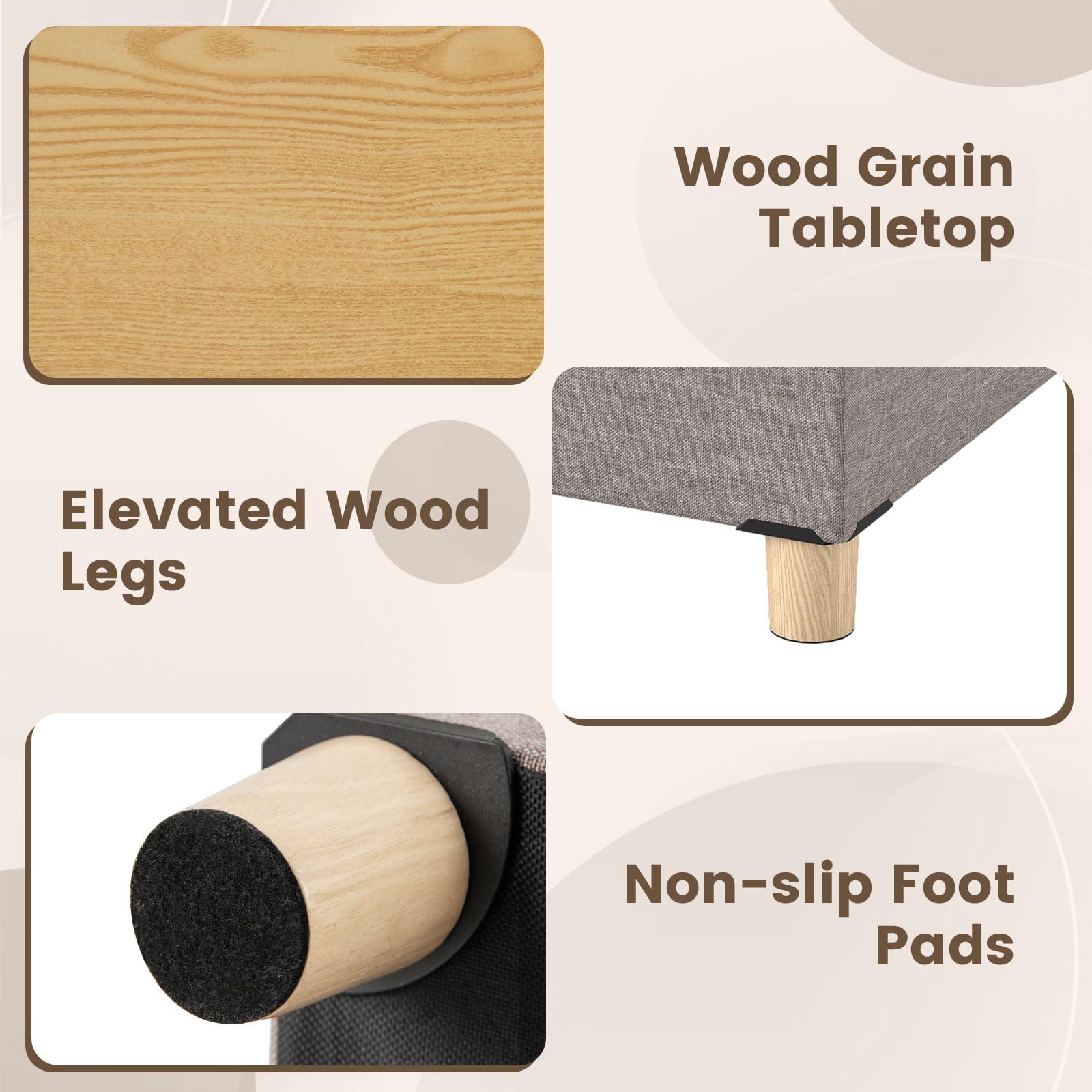 Material: Linen Fabric, Foam, Rubber Wood, MDF