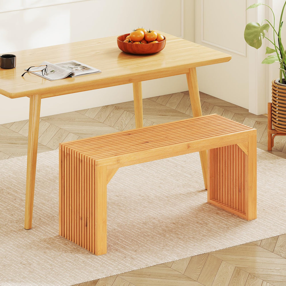 - [Robust Construction]: This dining bench is crafted of 100% natural bamboo, ensuring that it withstands daily wear and tear with ease. It offers a reliable seating solution for your dining area with a strong loading capacity of 660 lbs.