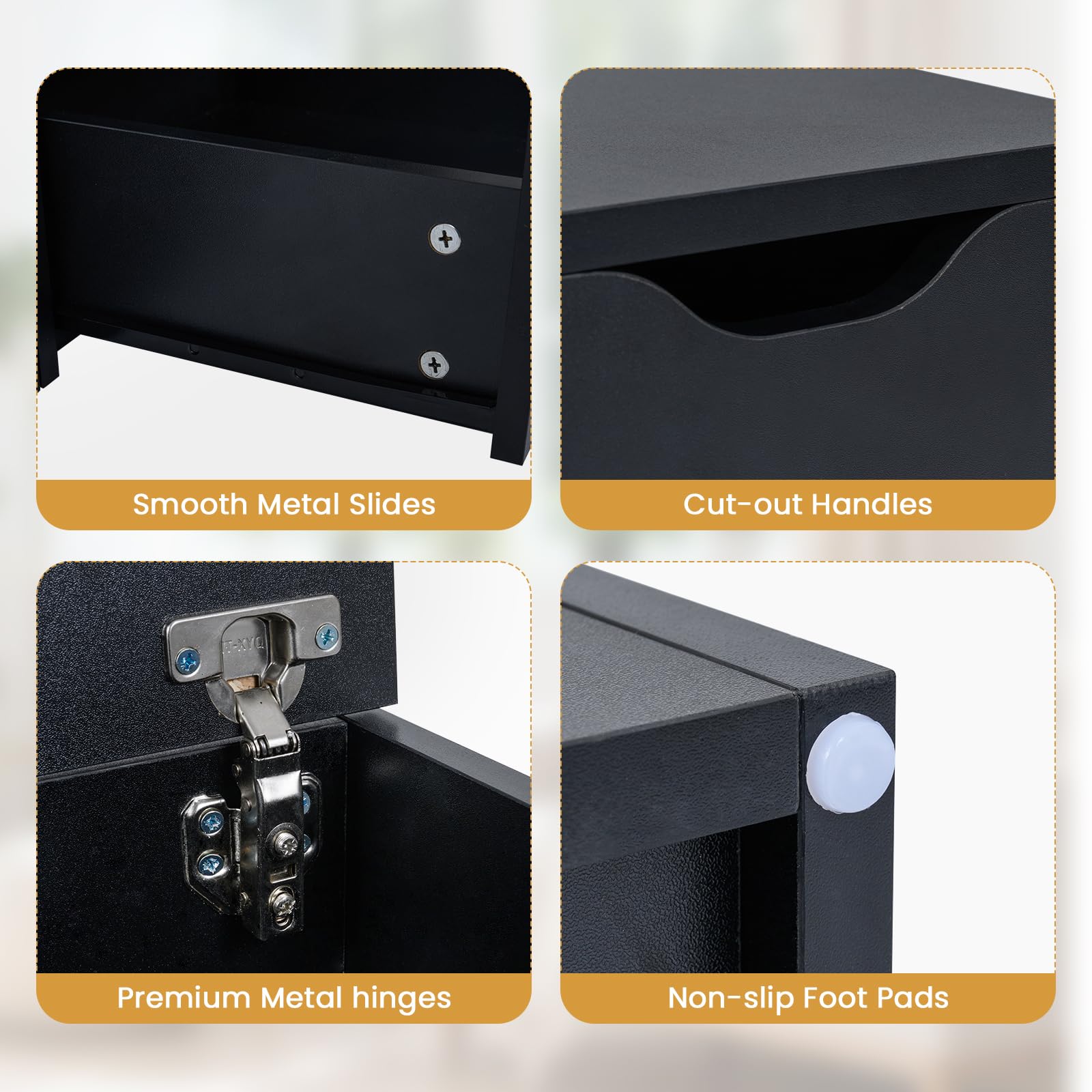 Hidden storage compartment & smooth-glide drawer for convenience
