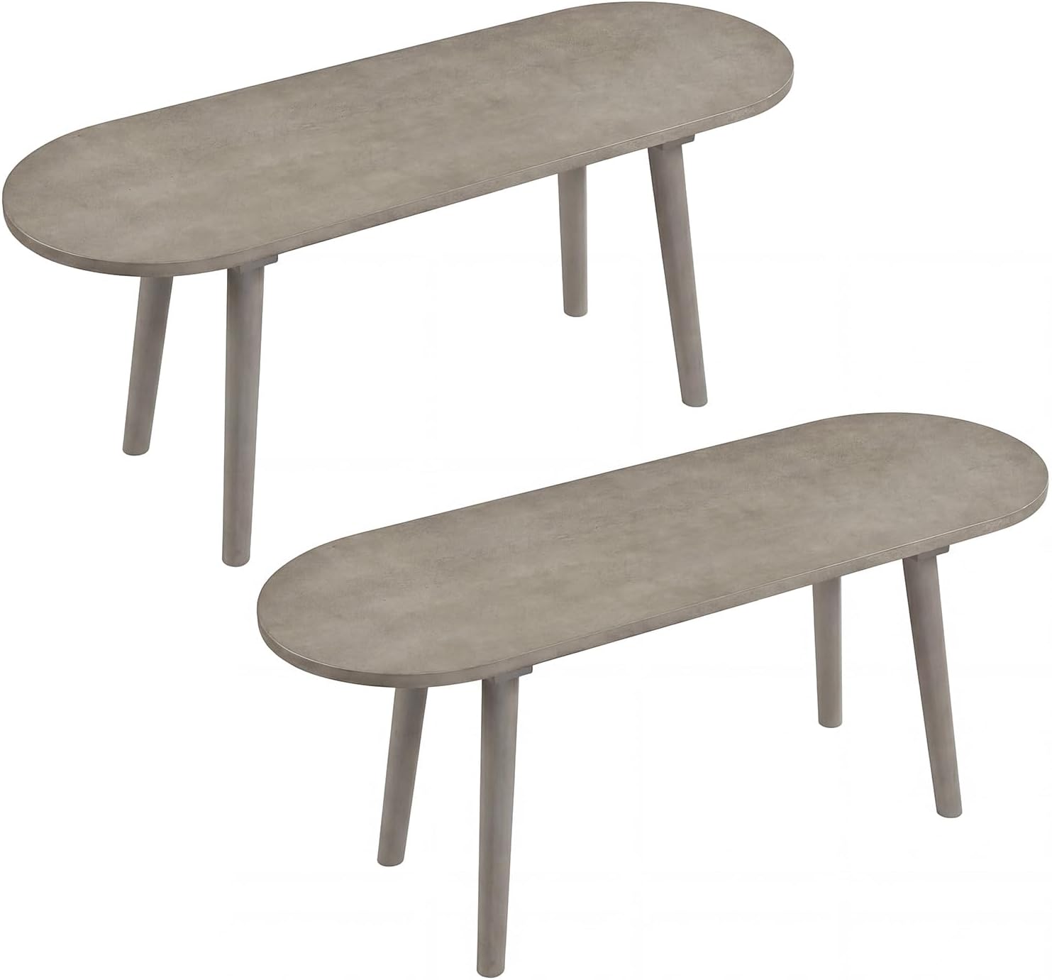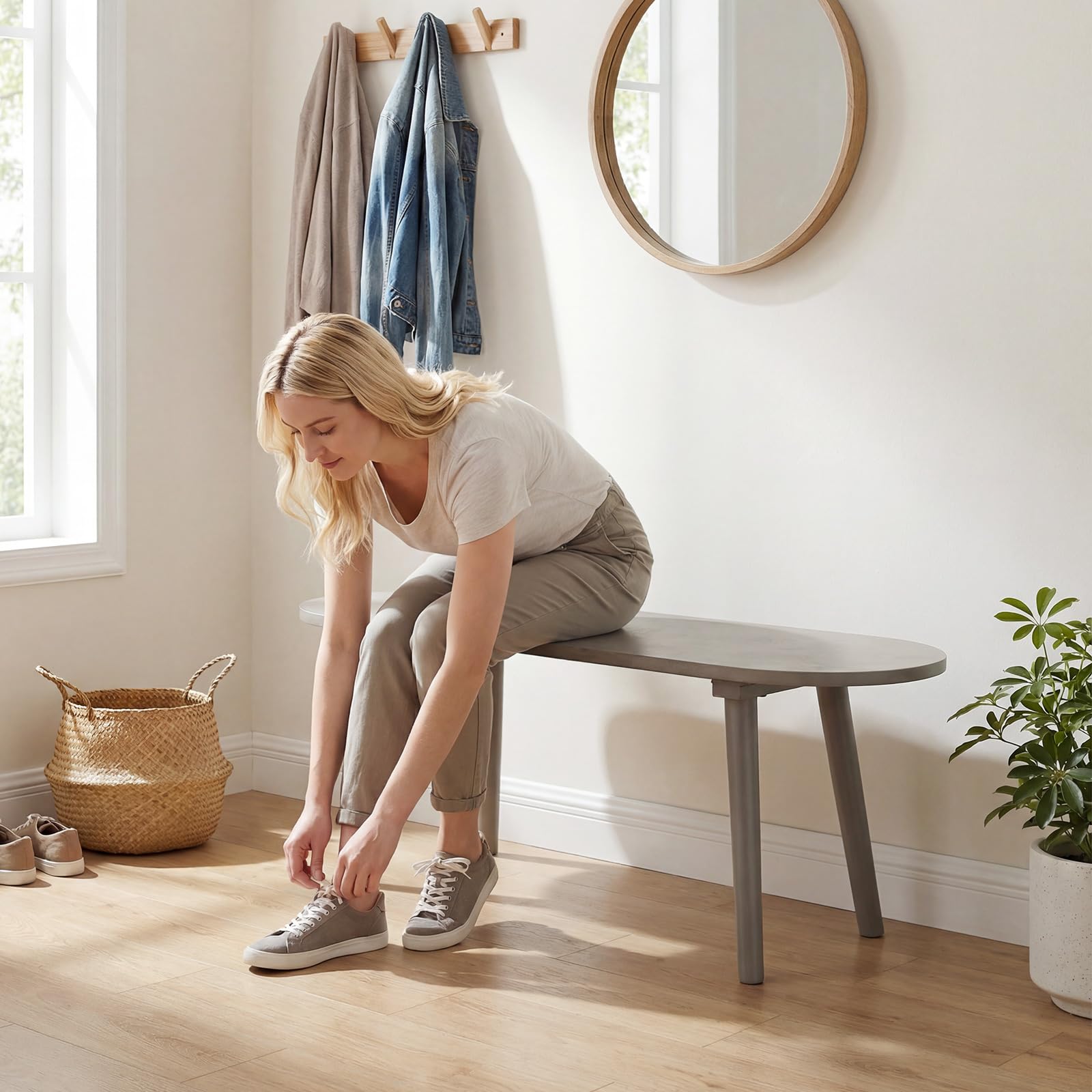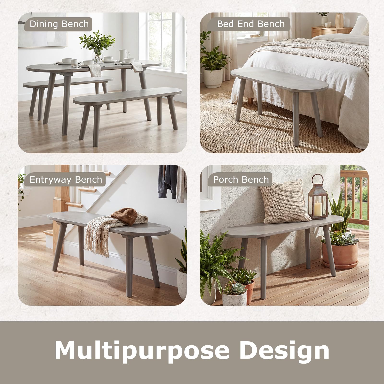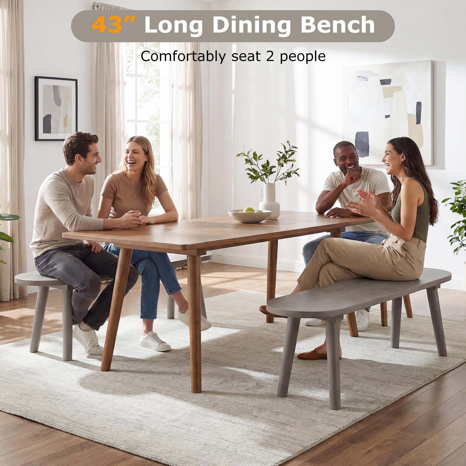 Our 43" long dining bench fits 2 people comfortably and slides under most tables, ideal for space-saving homes. It boasts robust rubber wood legs and a reinforced base, offering deformation resistance and ensuring a strong loading capacity of 330 lbs for reliable everyday use. A modern rounded corner design, elegant gray finish, and scratch-resistant waterproof surface combine for both beauty and easy maintenance, while effortless assembly ensures hassle-free setup in any room. Not only for dining, this wooden bench also serves as an entryway bench, bed end storage bench, porch bench, or study bench, being a versatile centerpiece wherever needed.