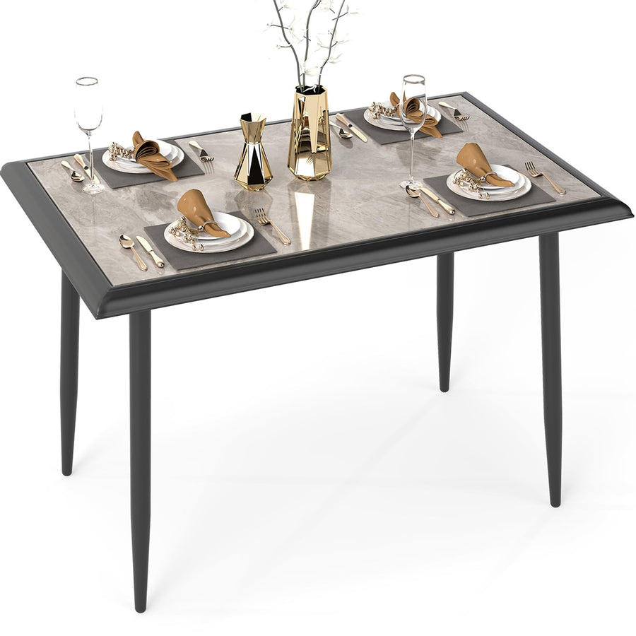 Looking for a practical and stylish dining table for your home? Here's a great option! This modern rectangular dining table features a premium sintered stone tabletop, which offers ample space for your meals and daily items. It's super heat-resistant, so you don't need to worry about using heat pads during mealtime. Plus, the tabletop is smooth and scratch-resistant, so you can easily clean it. And it's crafted from a sturdy powder-coated metal frame with more exquisite details such as stable triangular structure and anti-slip footpads for extra stability. This kitchen table measures 44" x 28" x 30", providing ample space for various scenarios like family gatherings, parties, or even for working and studying.
