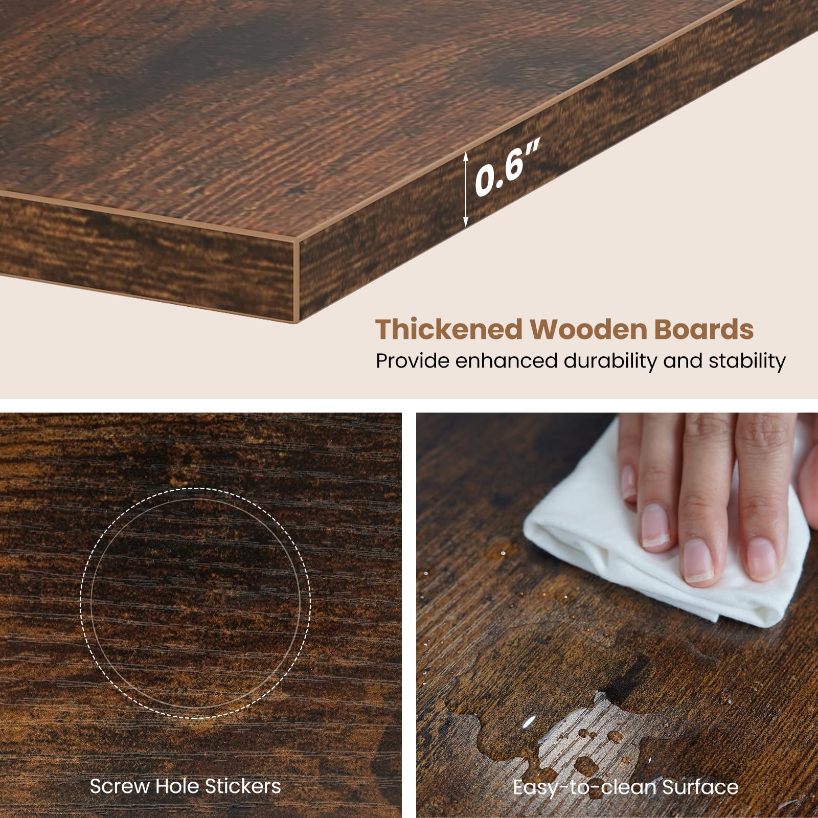 This floating shelving unit features thickened wooden boards and sturdy metal brackets, providing reliable support and durability for your items. Additionally, the vertical design of this floating bookshelf efficiently saves floor space while maximizing your storage potential. Its wood-like surface and rustic brown/white color contribute a warm, industrial/modern charm that complements your living space.