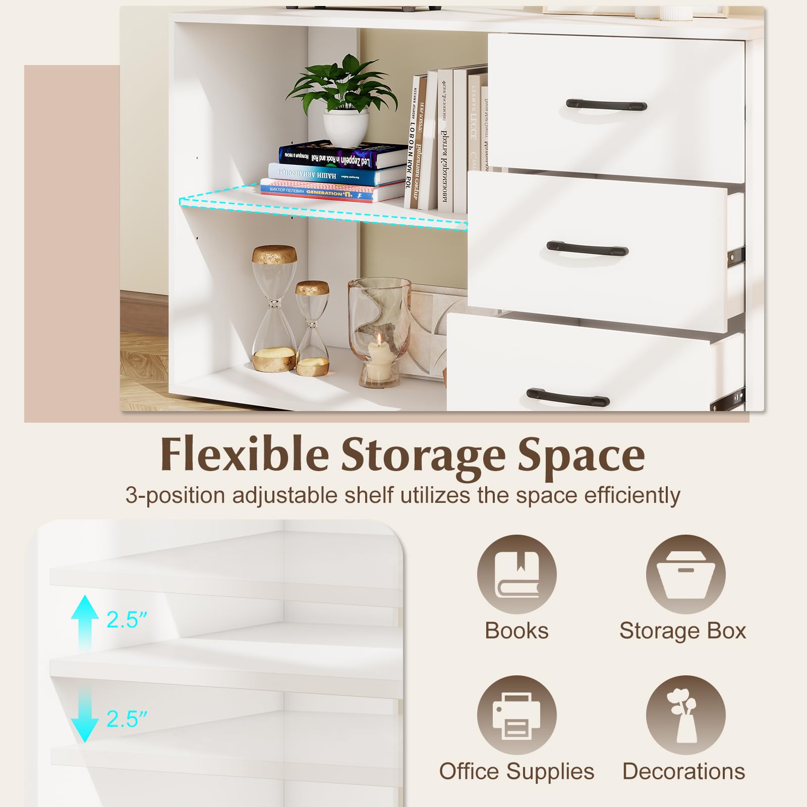 . With open compartments, 3-position adjustable shelf and 3 drawers, the study desk provides plenty of space to keep your