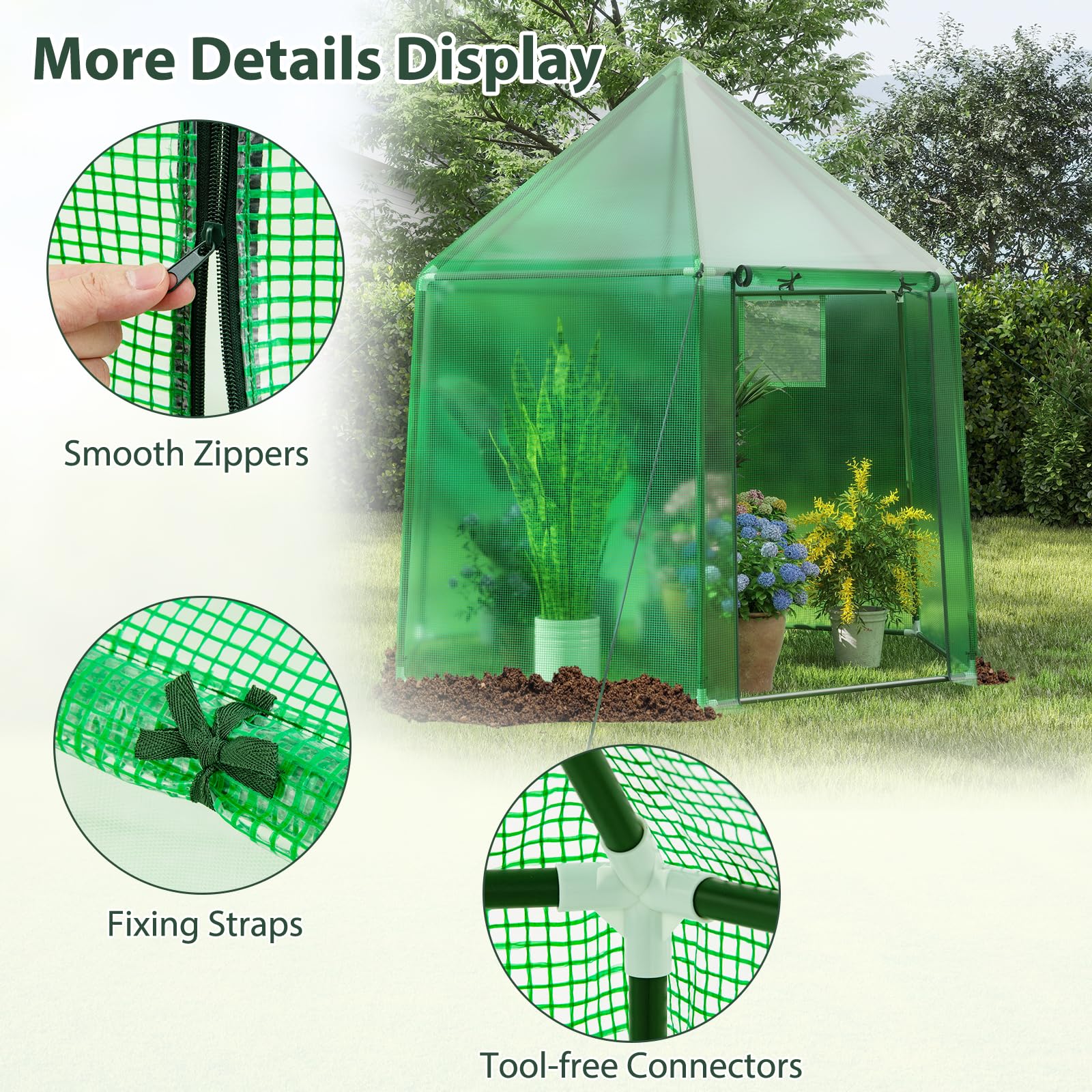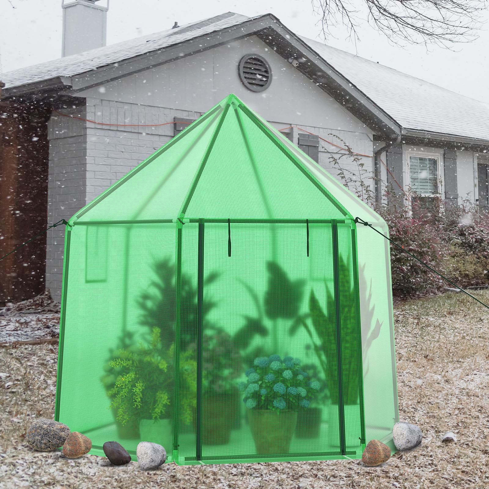 Boasting a wear-resistant and weather-proof PE cover, the greenhouse can shield plants from harsh weather conditions and unwanted guests. Also, the translucent panels allow ample sunlight to filter through, promoting healthy and robust plant development. Moreover, 2 dual-layer mesh windows ensure proper airflow and prevent humidity build-up inside the greenhouse. In addition, a large door provides easy access for plant care. Therefore, the mini greenhouse is suitable for growing a variety of plants with great success. The greenhouse is built-to-last with PE-coated metal supporting frame. Additionally, wind ropes and ground stakes are provided to prevent the hot tent being blown down. Plus, the cover features extended edge bottom for weighted objects. Setting up the mini greenhouse was a breeze, as the instructions were clear and easy to follow.