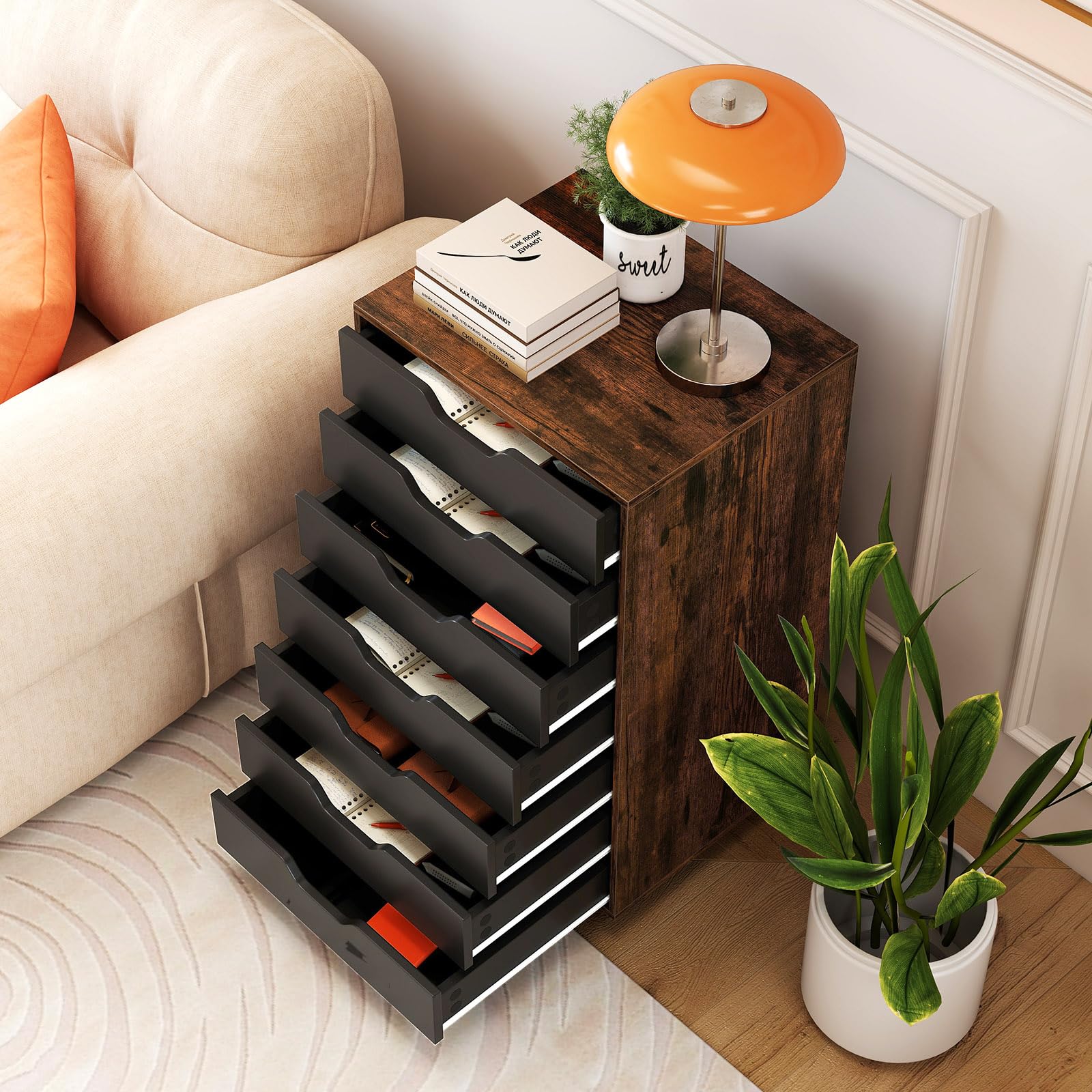 Maximize your space with this versatile 7-drawer file cabinet that effortlessly organizes office supplies, snacks, cosmetics, and more.