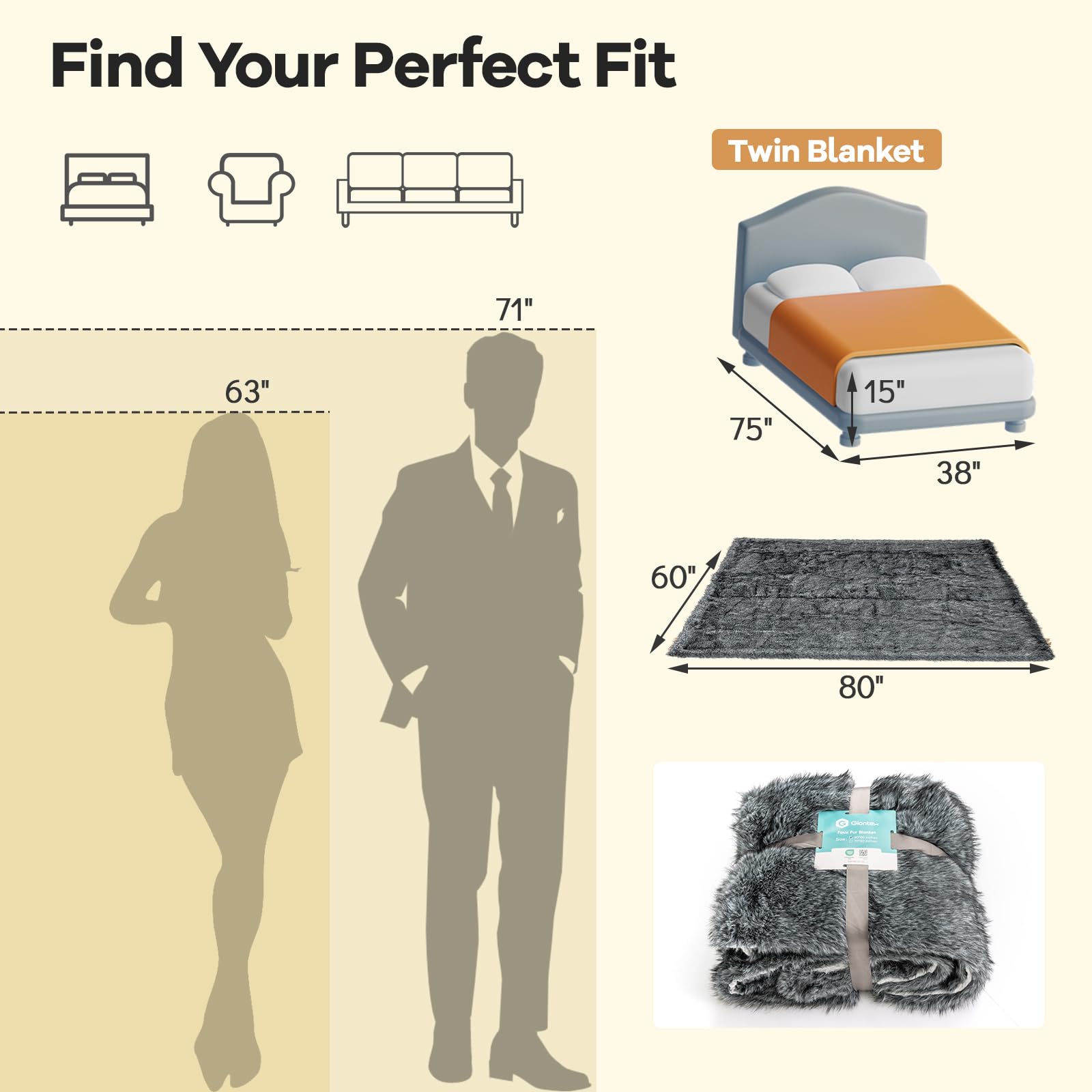 Wrap yourself in the ultimate warmth with this sumptuous faux fur throw, boasting a plush exterior of faux wolf fur measuring 1.5”-2.4” long and a silky soft fleece lining. Crafted from heavyweight 740GSM faux fur and featuring a double-sided design, this cozy blanket locks in heat, perfect for chilly nights. Its rich texture adds a touch of sophistication, effortlessly enhancing any sofa, bed, or armchair. Designed for modern living, this OEKO-TEX certified throw resists fading and requires minimal care. Find your perfect fit, measuring a generous 60”L x 80”W, it is ideal for gifting on special occasions like birthdays, holidays, or housewarmings.