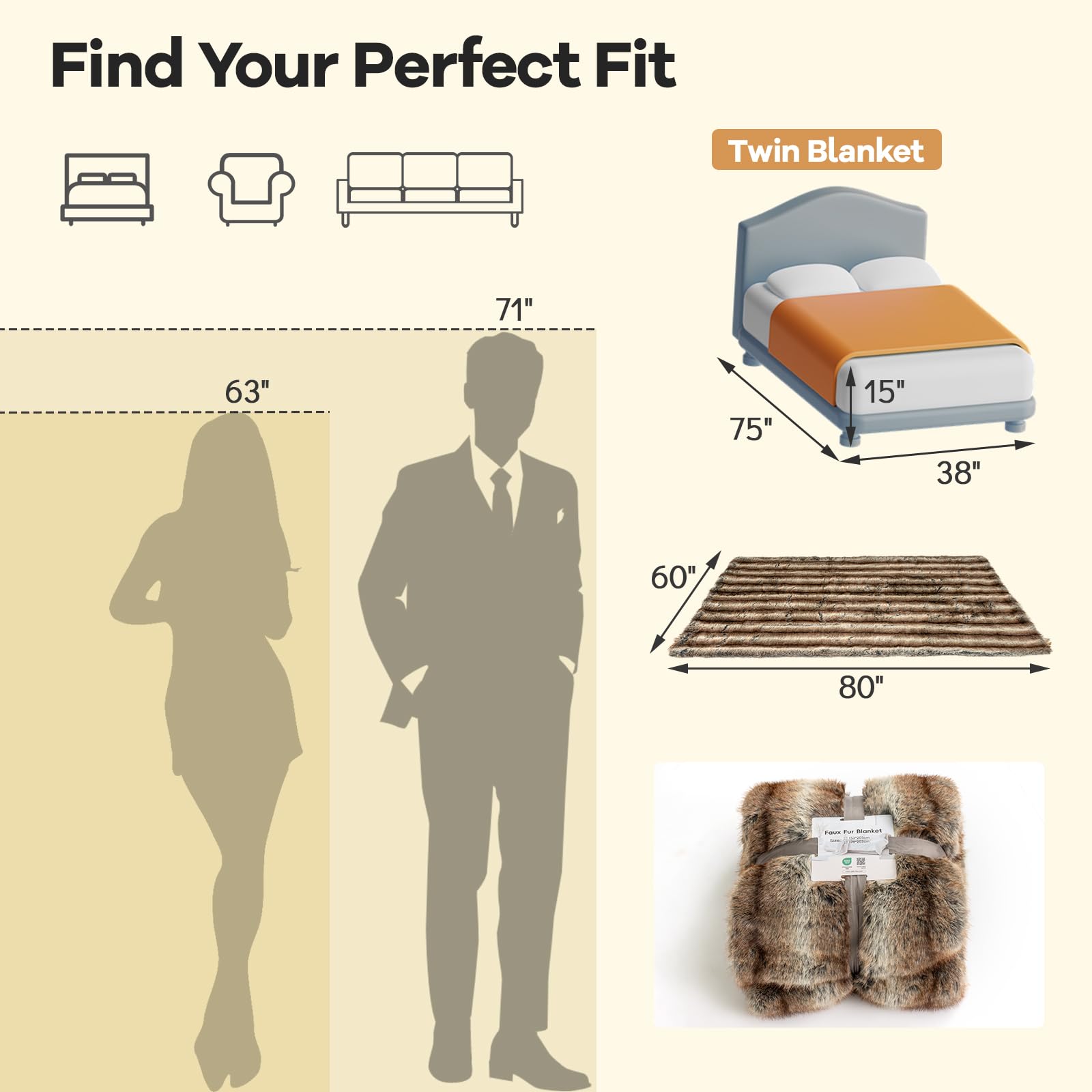 Wrap yourself in the ultimate warmth with this sumptuous faux fur throw, boasting a plush exterior of faux fox fur measuring 1.4”-2” long and a silky soft fleece lining. Crafted from heavyweight 780GSM faux fur and featuring a double-sided design, this cozy blanket locks in heat, perfect for chilly nights. Its rich texture adds a touch of sophistication, effortlessly enhancing any sofa, bed, or armchair. Designed for modern living, this OEKO-TEX certified throw resists fading and requires minimal care. Find your perfect fit, measuring a generous 60”L x 80”W, it is ideal for gifting on special occasions like birthdays, holidays, or housewarmings.
