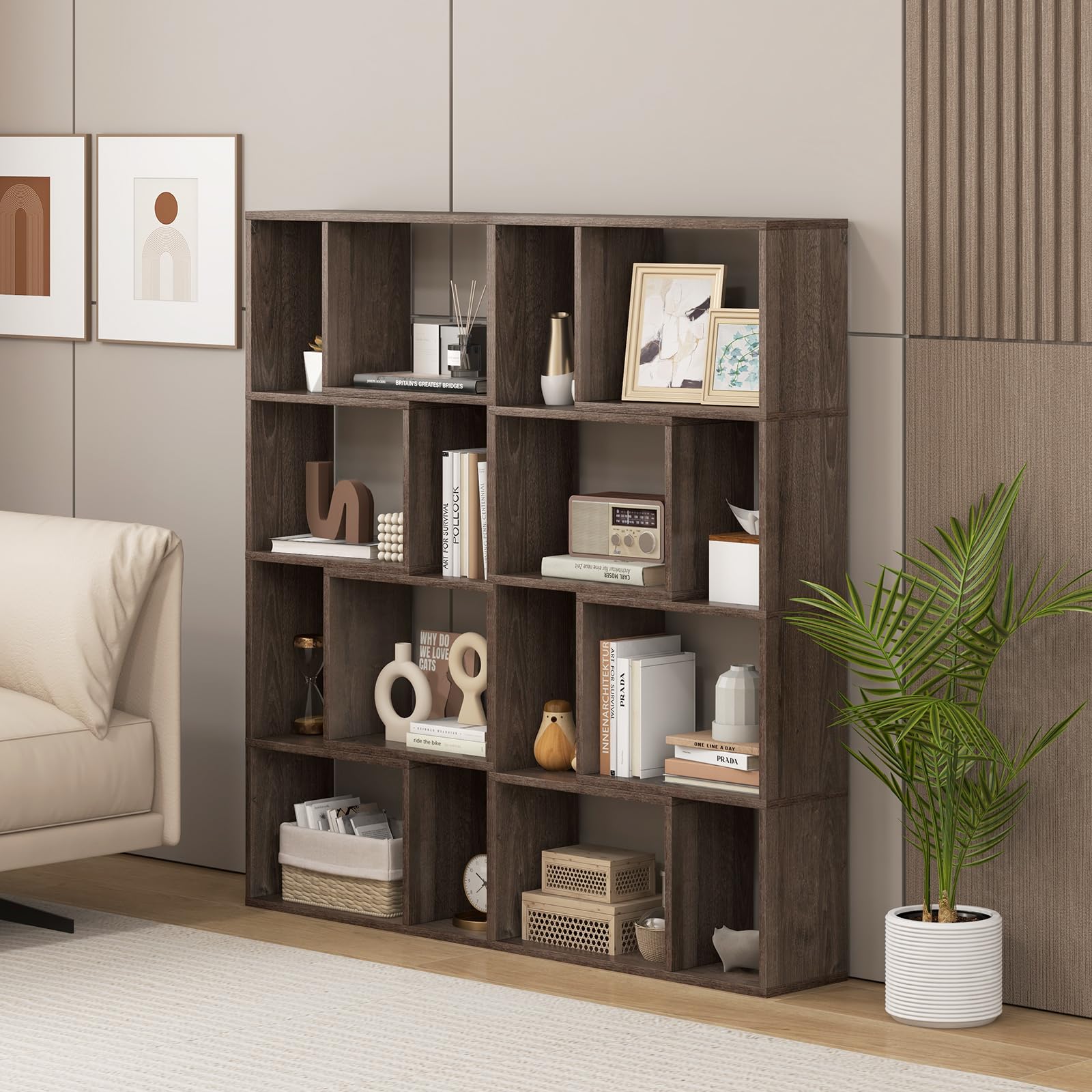 Geometric bookcase complements home decoration