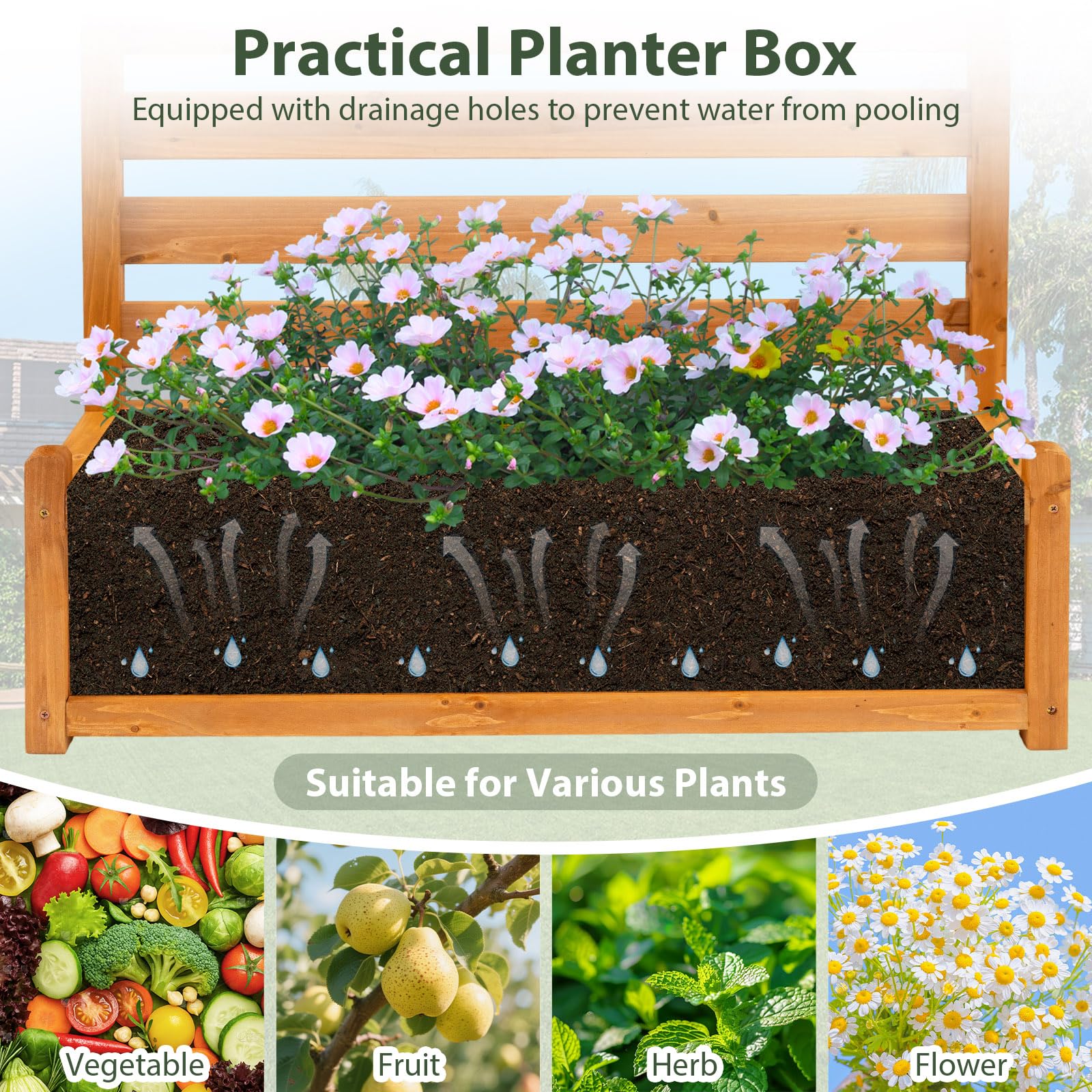 Designed for versatility, it works as a privacy screen, stylish garden fence, and practical enclosure for air conditioners, trash cans, or pool equipment. The no-dig design and attached planter boxes make installation quick and stable, while slatted panels offer excellent airflow to keep your equipment cool. Moreover, it features effective drainage system and removable bottom panels to accommodate a variety of greenery, making it deal for flowers, vegetables, or climbing plants. Made from premium fir wood with a smooth and customizable finish, this privacy screen combines sturdy construction with elegant style for your backyard, patio, or garden.
