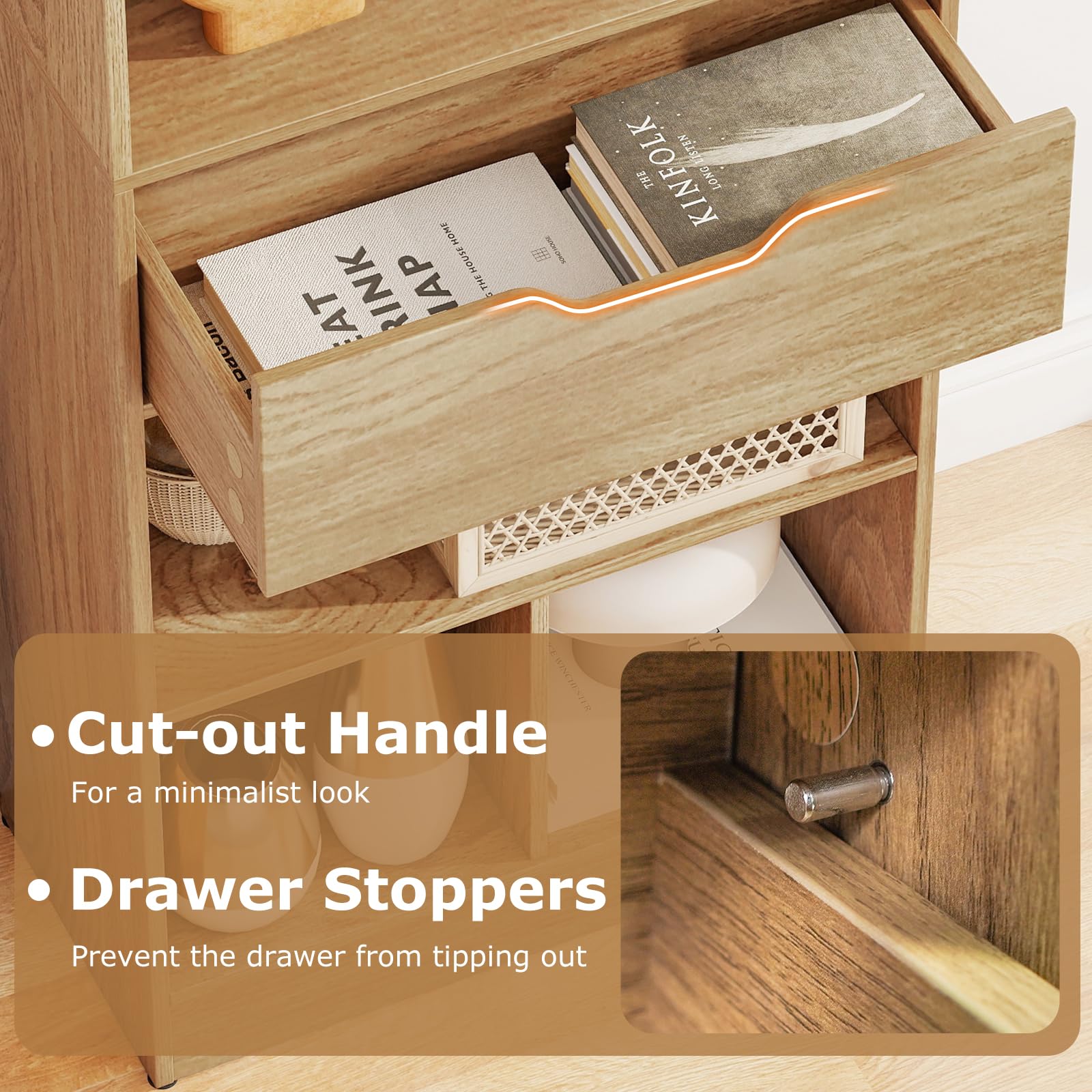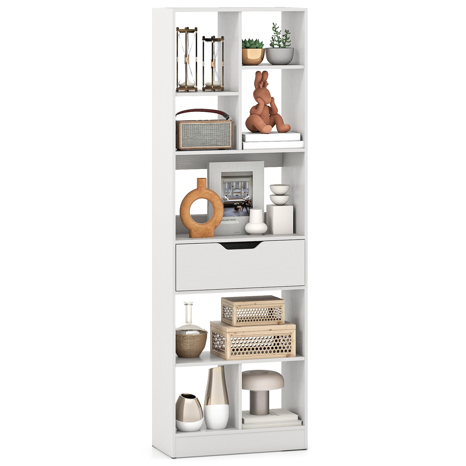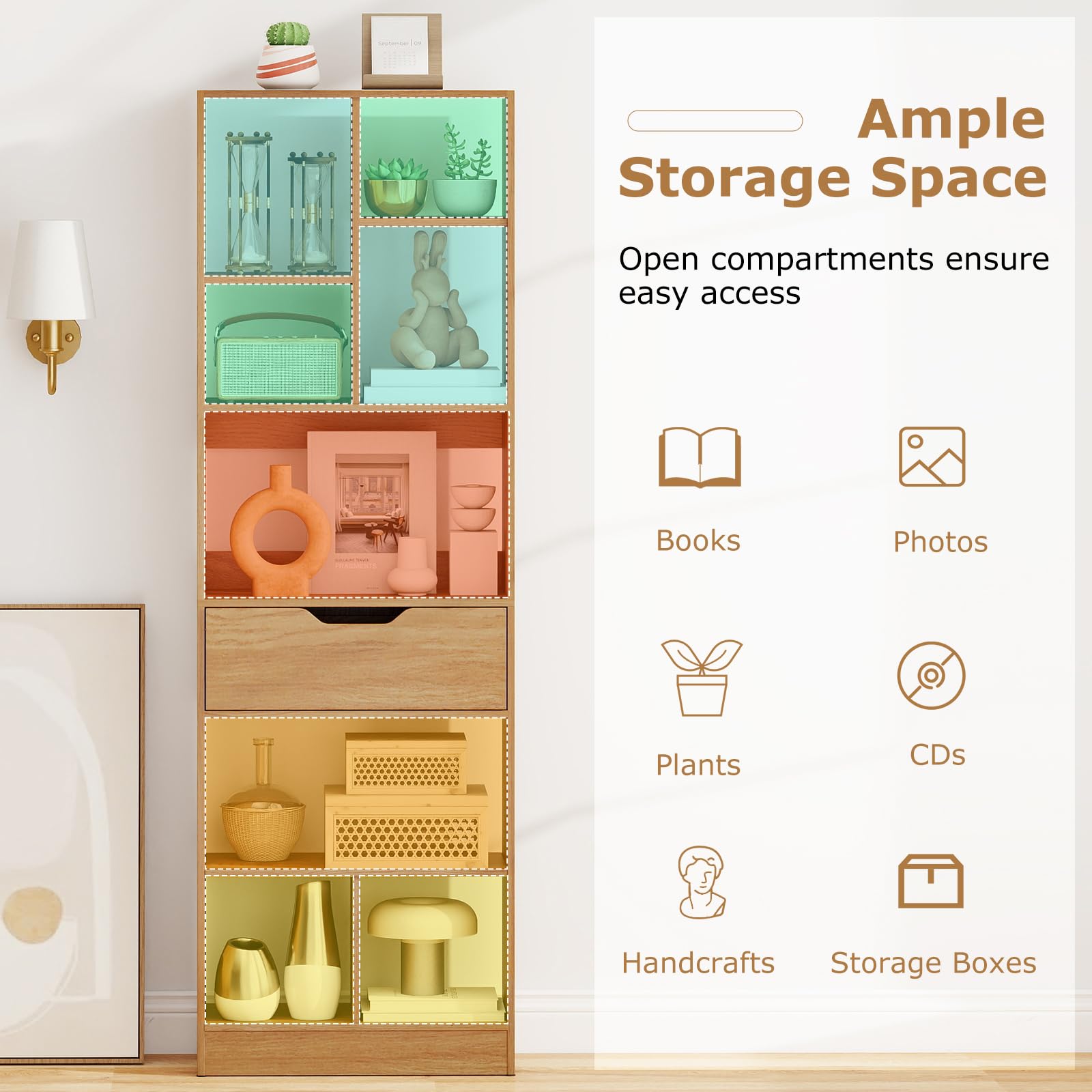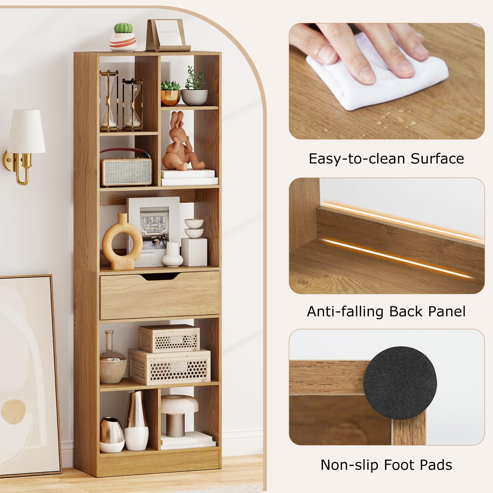 Keep your home organized and stylish with our sleek bookcase that offers 8 open cubbies plus a deep drawer to store and display everything from books to plants. Built to last with thick engineered wood, it supports up to 187 lbs and features a practically easy-to-clean surface. Safety is a priority with 2 anti-tipping kits and non-slip pads, ensuring stability and floor protection. Enjoy smooth functionality with user-friendly details like a cut-out drawer handle and built-in stoppers. Plus, its minimalist Scandinavian design fits seamlessly into any scene. Don’t miss out! Your perfect storage solution is just a click away!