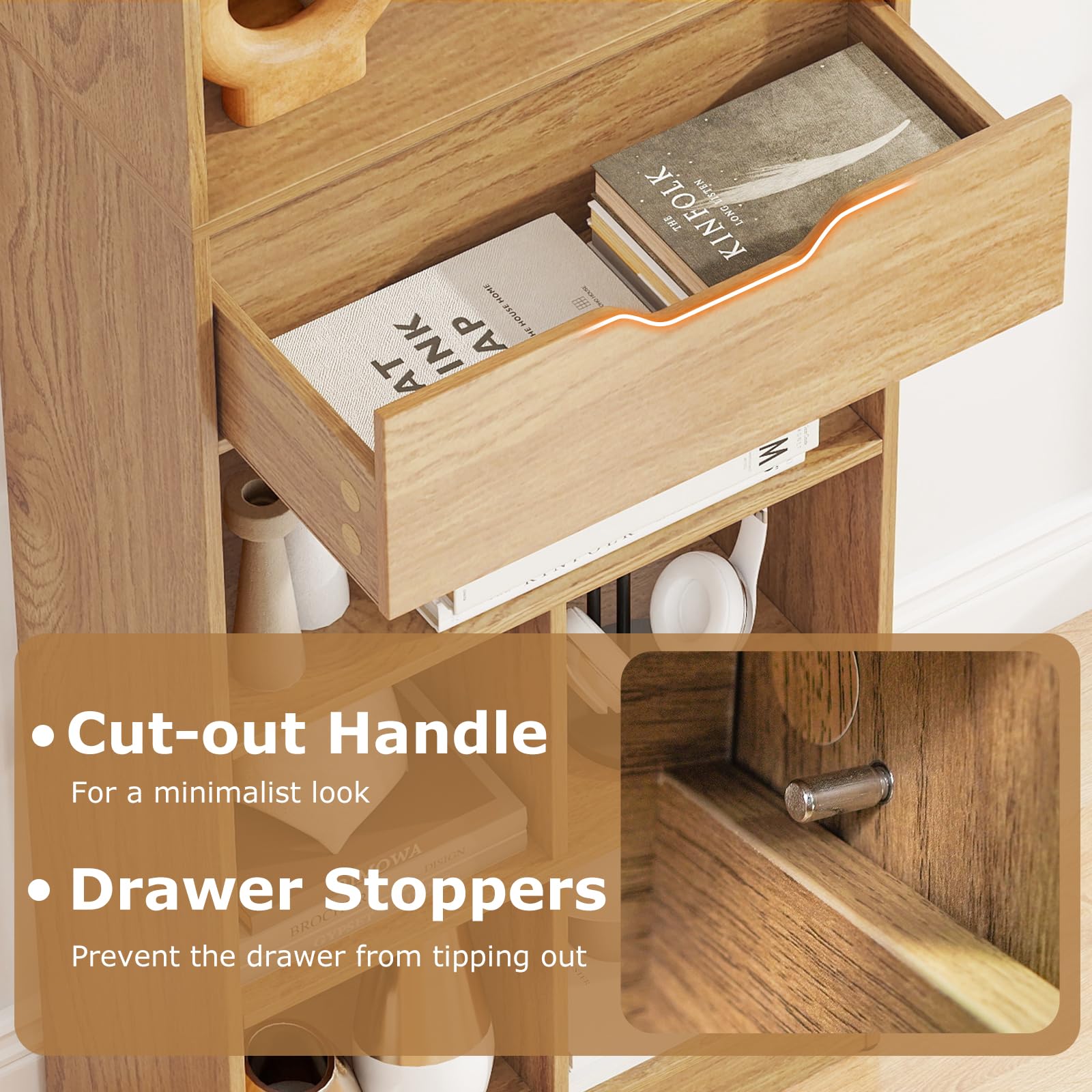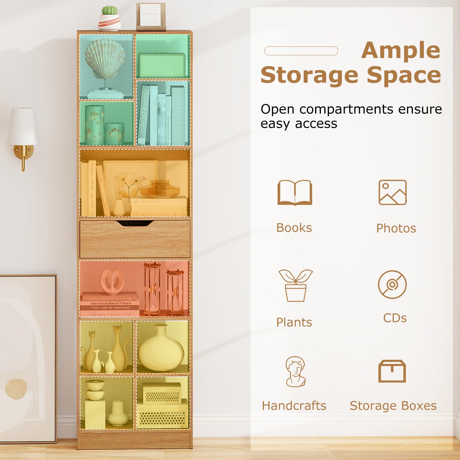Keep your home organized and stylish with our sleek bookcase that offers 10 open cubbies plus a deep drawer to store and display everything from books to plants. Built to last with thick engineered wood, it supports up to 205 lbs and features a practically easy-to-clean surface. Safety is a priority with 2 anti-tipping kits and non-slip pads, ensuring stability and floor protection. Enjoy smooth functionality with user-friendly details like a cut-out drawer handle and built-in stoppers. Plus, its minimalist Scandinavian design fits seamlessly into any scene. Don’t miss out! Your perfect storage solution is just a click away!