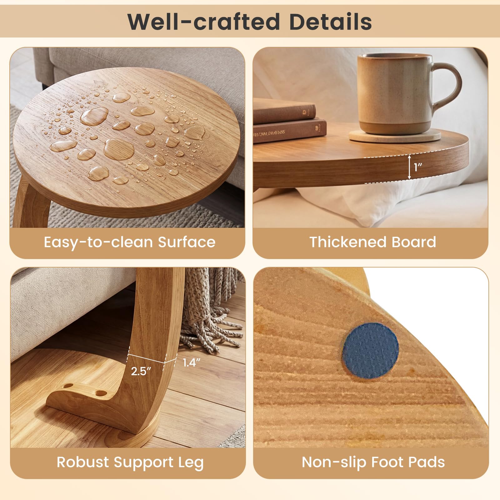 Space-saving C-shaped side table can fit snugly to your couch