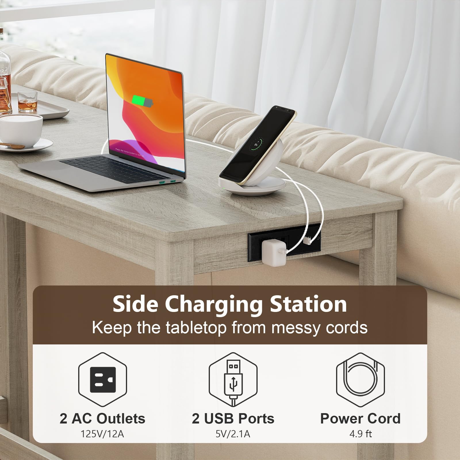 The charging station is seamlessly built into the side of the table to keep your devices powered without cluttering the surface.