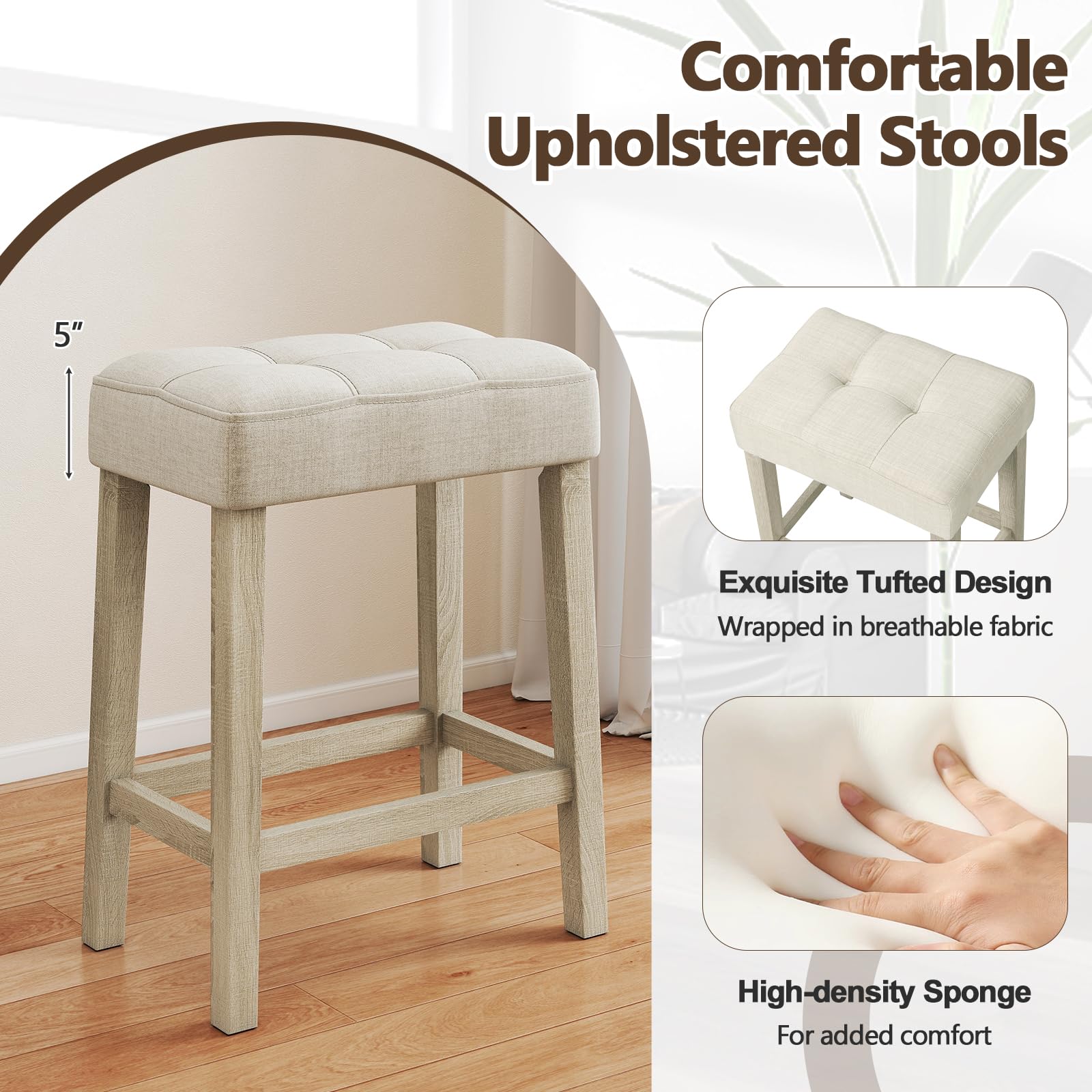 The 3 stools are genuinely comfortable for extended seating, thanks to the 5-inch thick tufted cushions.