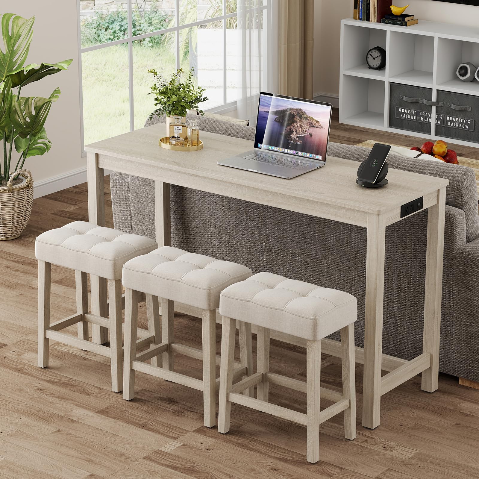 Featuring a built-in power strip with AC outlets and USB ports, it keeps all your devices powered up without clutter. Crafted from premium rubber wood and enduring materials, this dinner set is built to support heavy use—each ultra-comfy stool holds up to 415 lbs and features plush, tufted cushions for superior relaxation. Its rustic wood grain finish brings cozy farmhouse flair to any space, while the space-saving stools being stored under the dining table for a clutter-free look. Perfect for apartments, breakfast nooks, or compact dining areas—this dining table set combines modern charging solutions and timeless style in one irresistible package! Transform your home with smart design and cozy charm today!