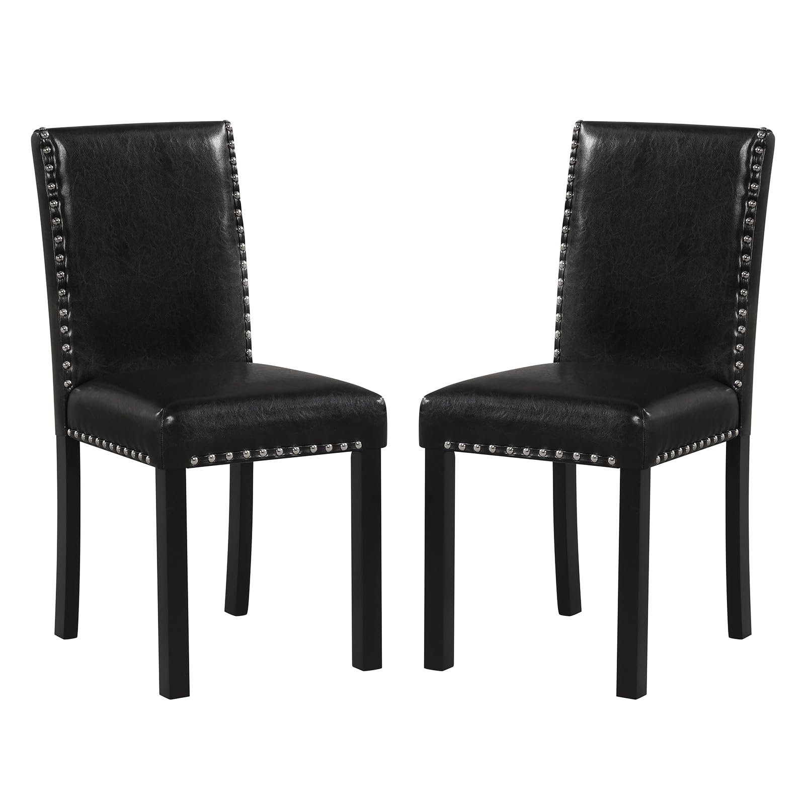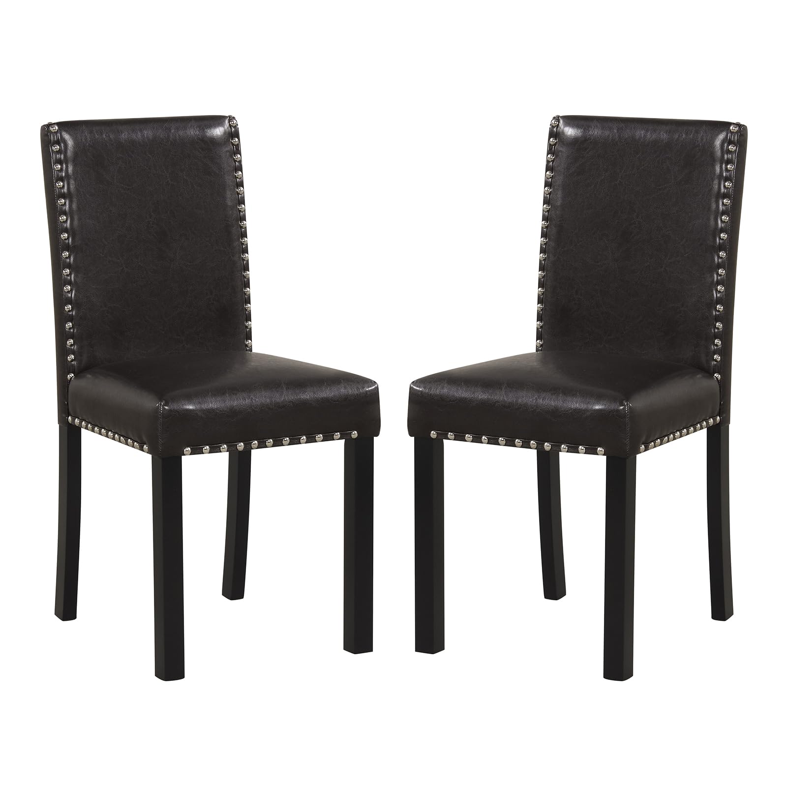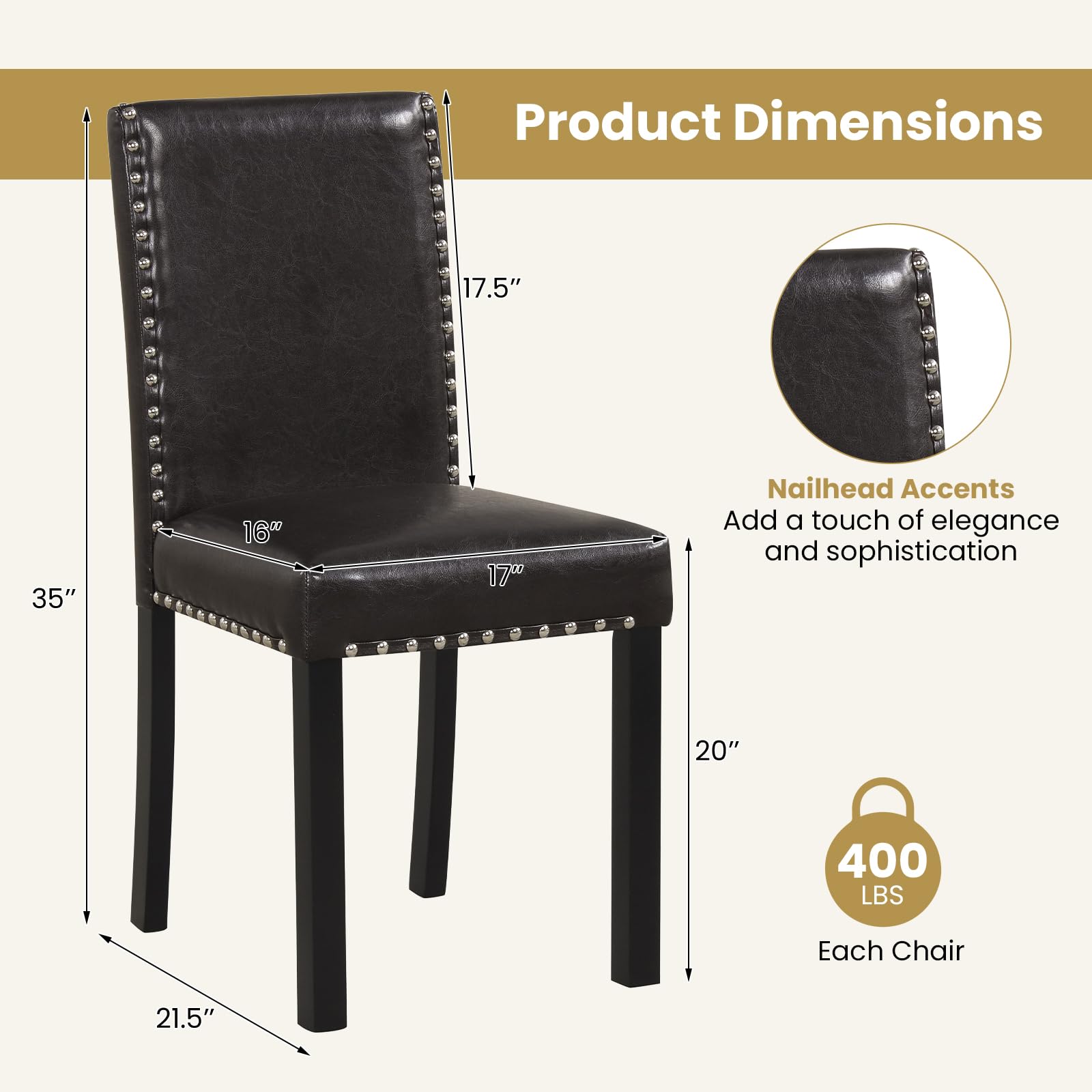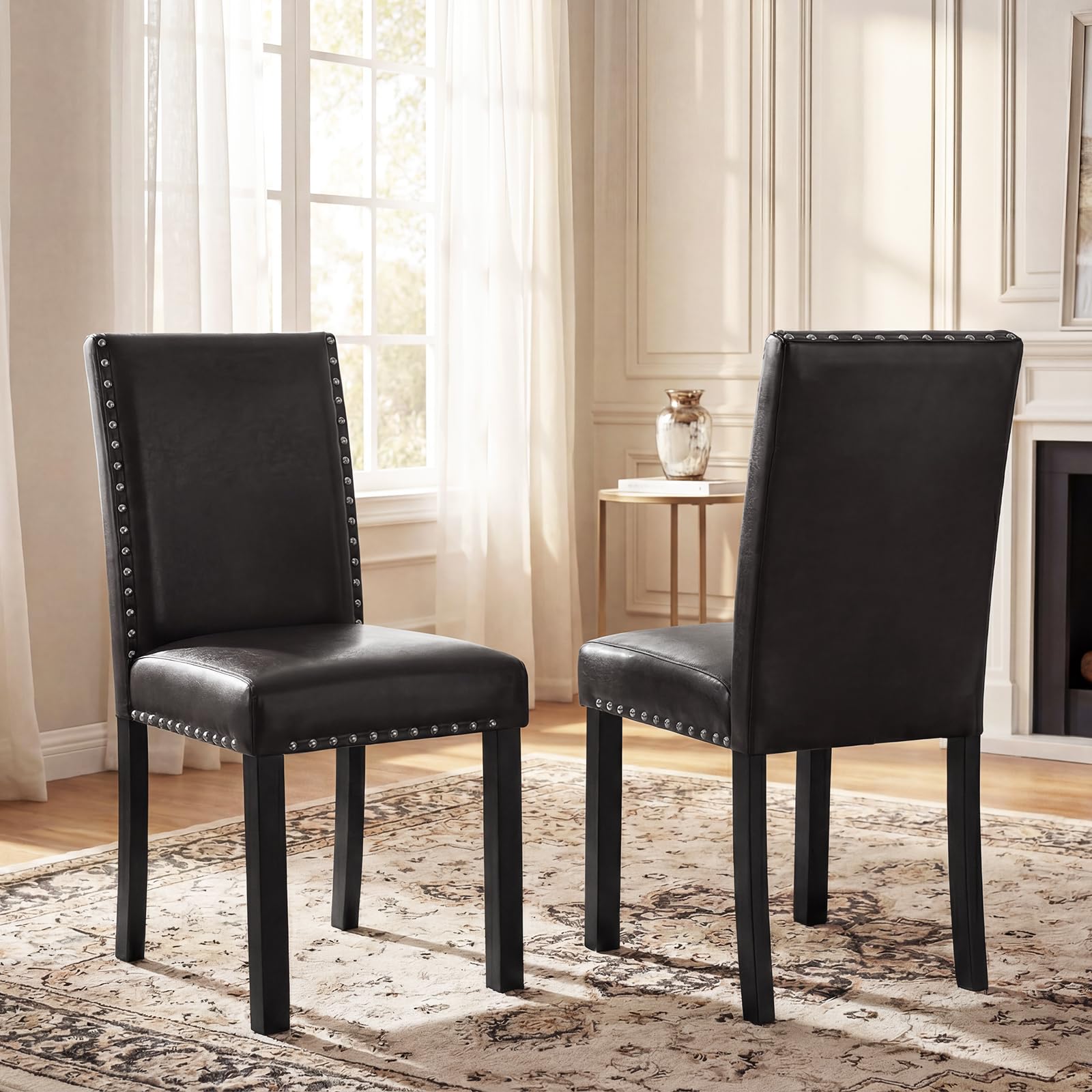 Our modern and sleek dining chairs features plush 4.5" padded seats and ergonomically curved backrests, providing supreme comfort and support to promote healthy posture at every meal. The armless and lightweight build makes these chairs easy to move and tuck away, optimizing space in any room. Expertly crafted with sturdy rubber and bent wood legs, paired with reinforced corner blocks under the seat and anti-slip foot pads, the chairs ensure remarkable stability and strength for daily use. The rich espresso/black finish and refined nailhead accents lend an elegant touch, allowing these versatile chairs to complement modern, farmhouse, or office interiors with ease. The smooth faux leather upholstery is waterproof and easy to clean, making these upholstered dining chairs an ideal choice for family gatherings or frequent entertaining.