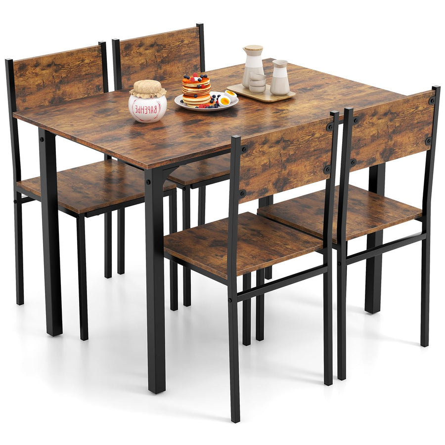 - [Flexible Layout for Space Saving] Maximize your space with this 5 piece dining table set that allows the 4 chairs to be tucked under the table when not in use. Customize your layout by freely arranging the chairs to suit your needs.